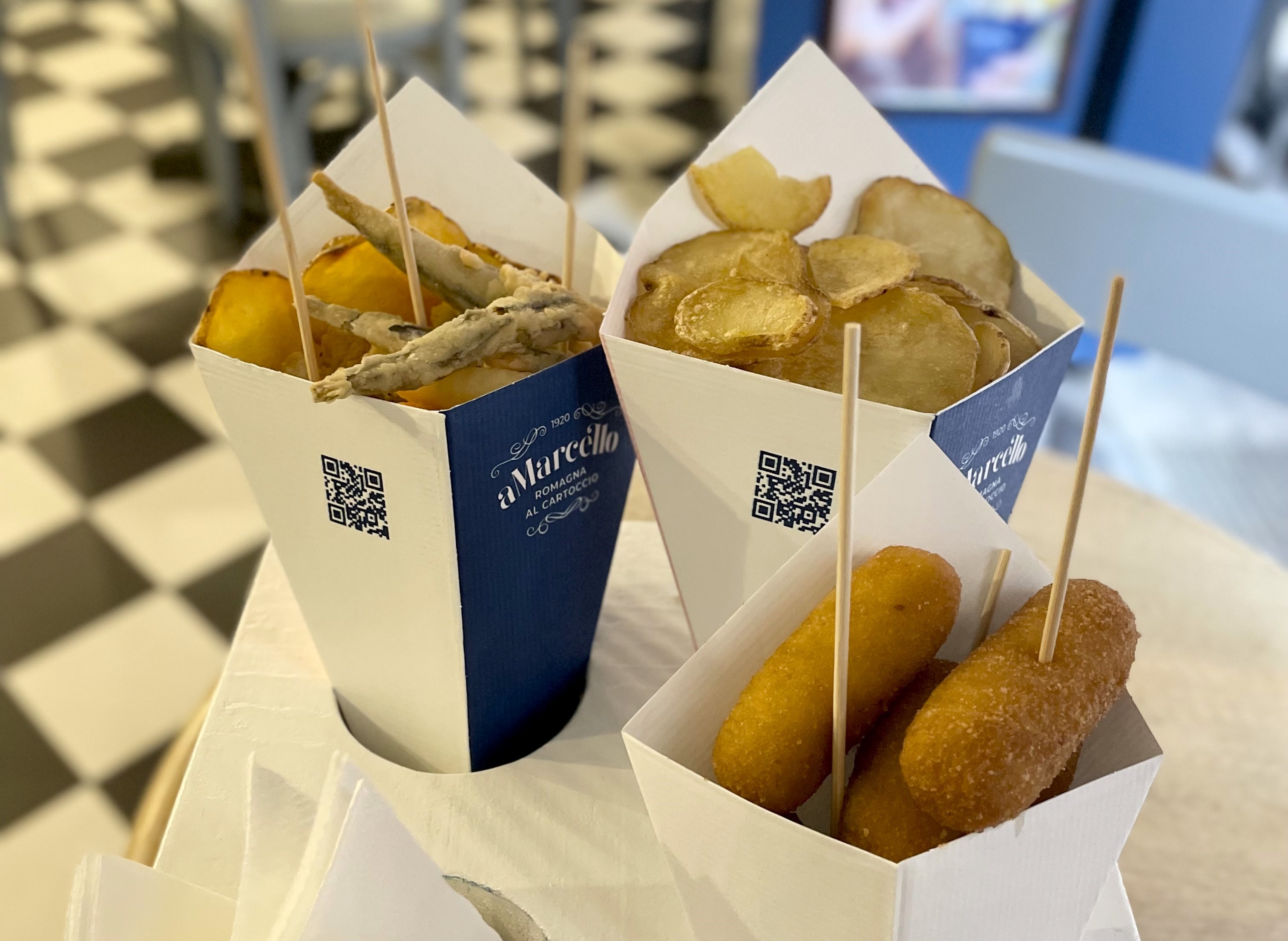 Cibo da passeggio per palati allenati. Aperto tutti i giorni dalle 11:00 alle 22:30, aMarcello propone la Romagna al cartoccio.