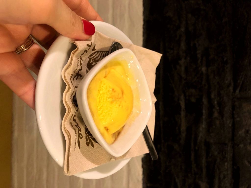 Gioia finale: affogato al mirto con il gelato alla crema della Gelateria Delle Moline e il Mirto Artigianale del liquorificio Zelosu.