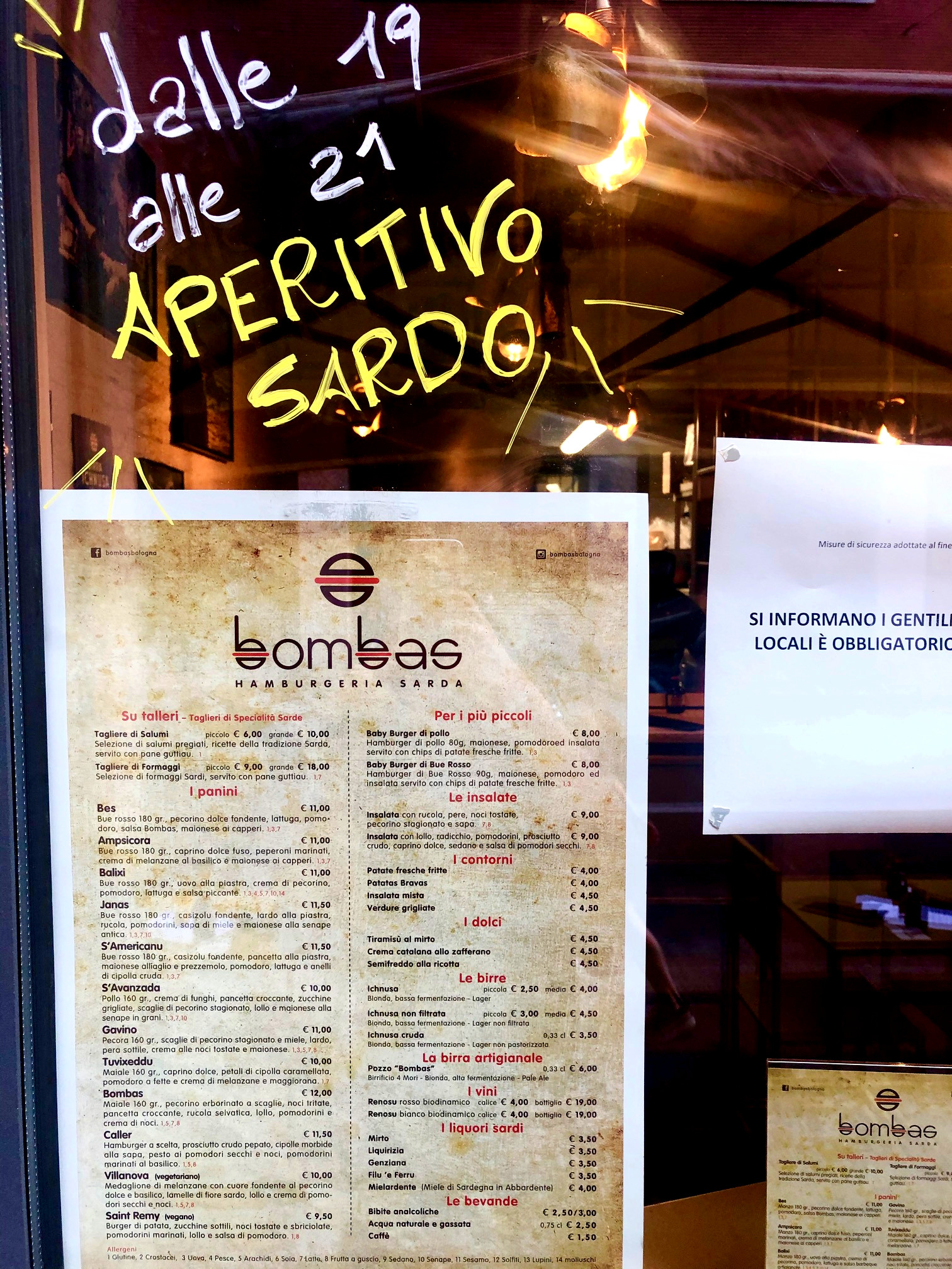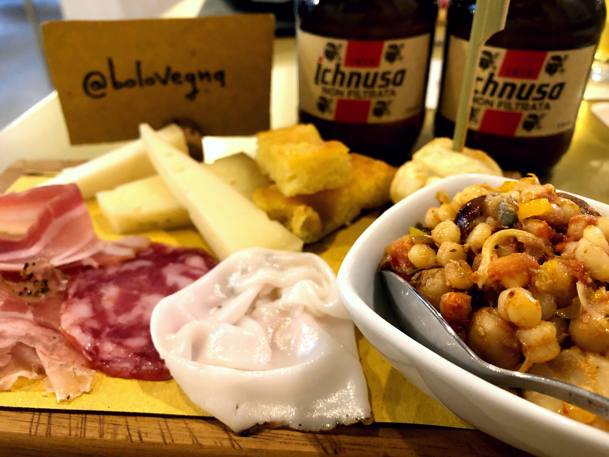 Dal martedì alla domenica, dalle 19 alle 21, l’hamburgeria sarda in pieno centro a Bologna propone un’ampia selezione di salumi e formaggi 100% sardi come quelli del salumificio Monte Arci di Marrubiu (OR): pancetta, lardo, prosciutto pepato e salame Sardegna rigorosamente prepararati con ricette della tradizione.
