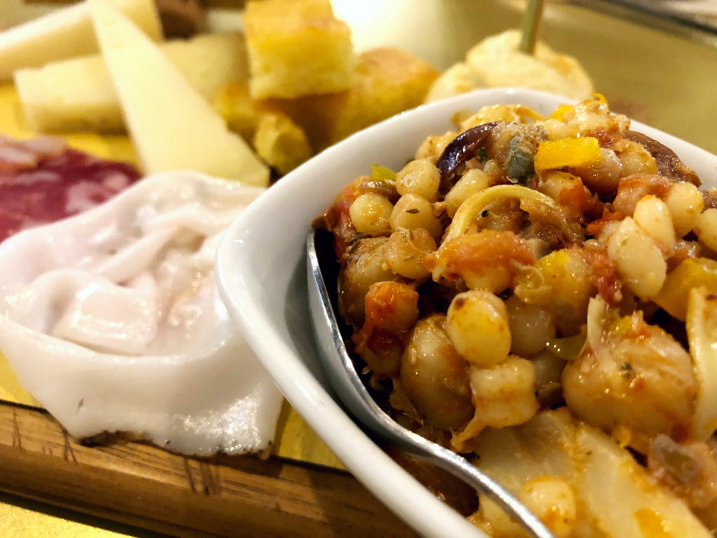 E poi l’insalata di fregola e i culurgiones, ravioli tradizionali con ripieno di patate e menta, fritti e serviti con scaglie di pecorino.