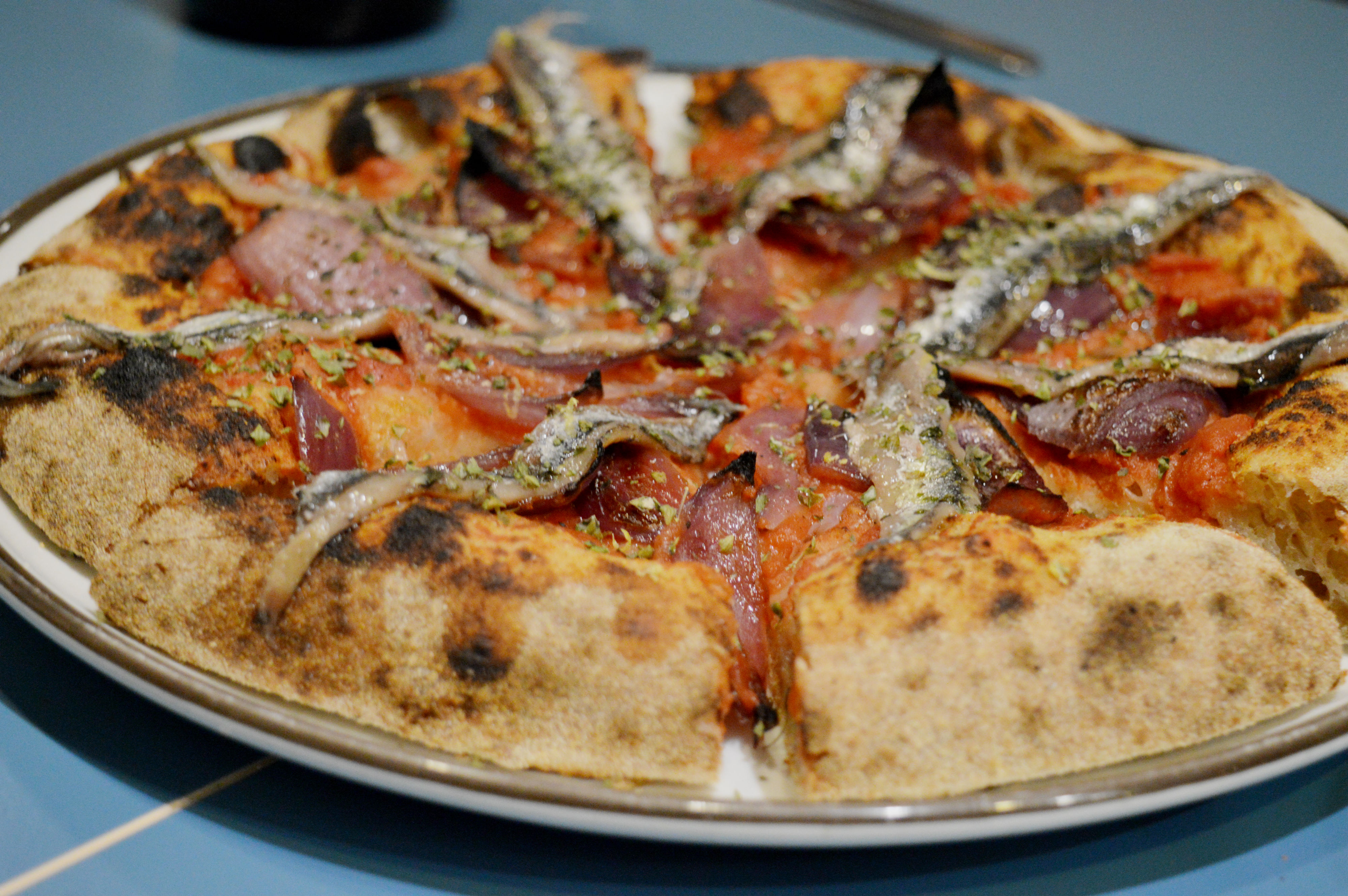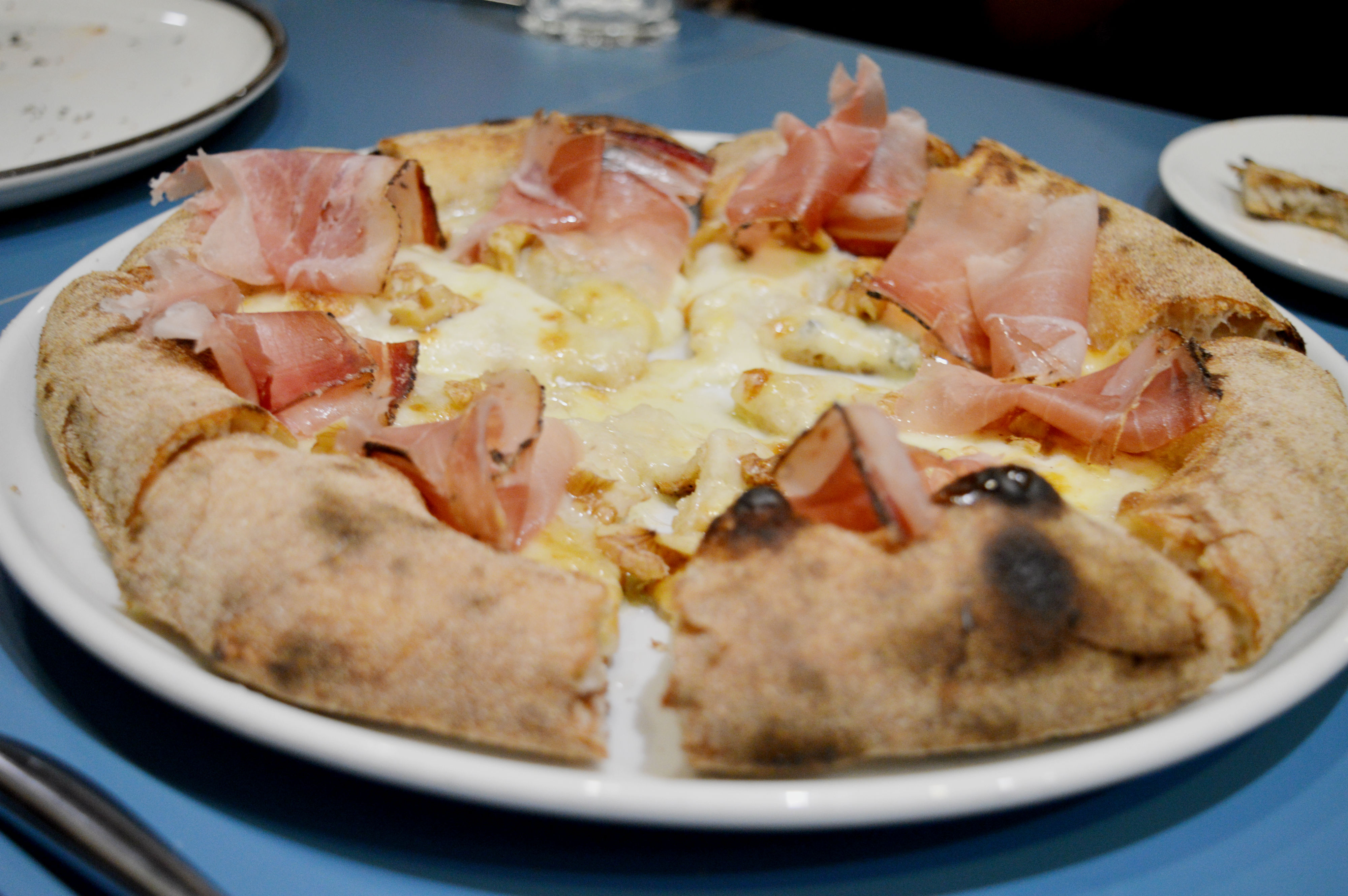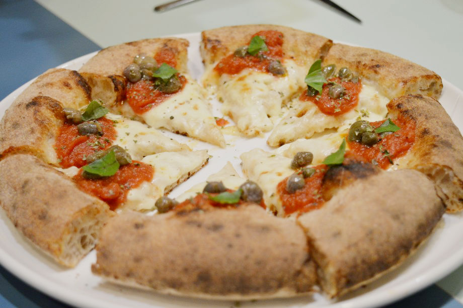 Noi ve ne suggeriamo quattro che abbiamo avuto la fortuna di assaggiare: la pizza Capperi di Salina, pomodoro Fiaschetto di Torre Guaceto, fiordilatte, origano, basilico e pepe, la versione Acciughe di Cetara, pomodoro, cipolla rossa di Tropea, limone e origano, la pizza Zucca arrostita, funghi misti saltati, taleggio, prezzemolo, fiordilatte e, perfetta conclusione, la pizza Fiordilatte, speck, gorgonzola, noci, miele di acacia.