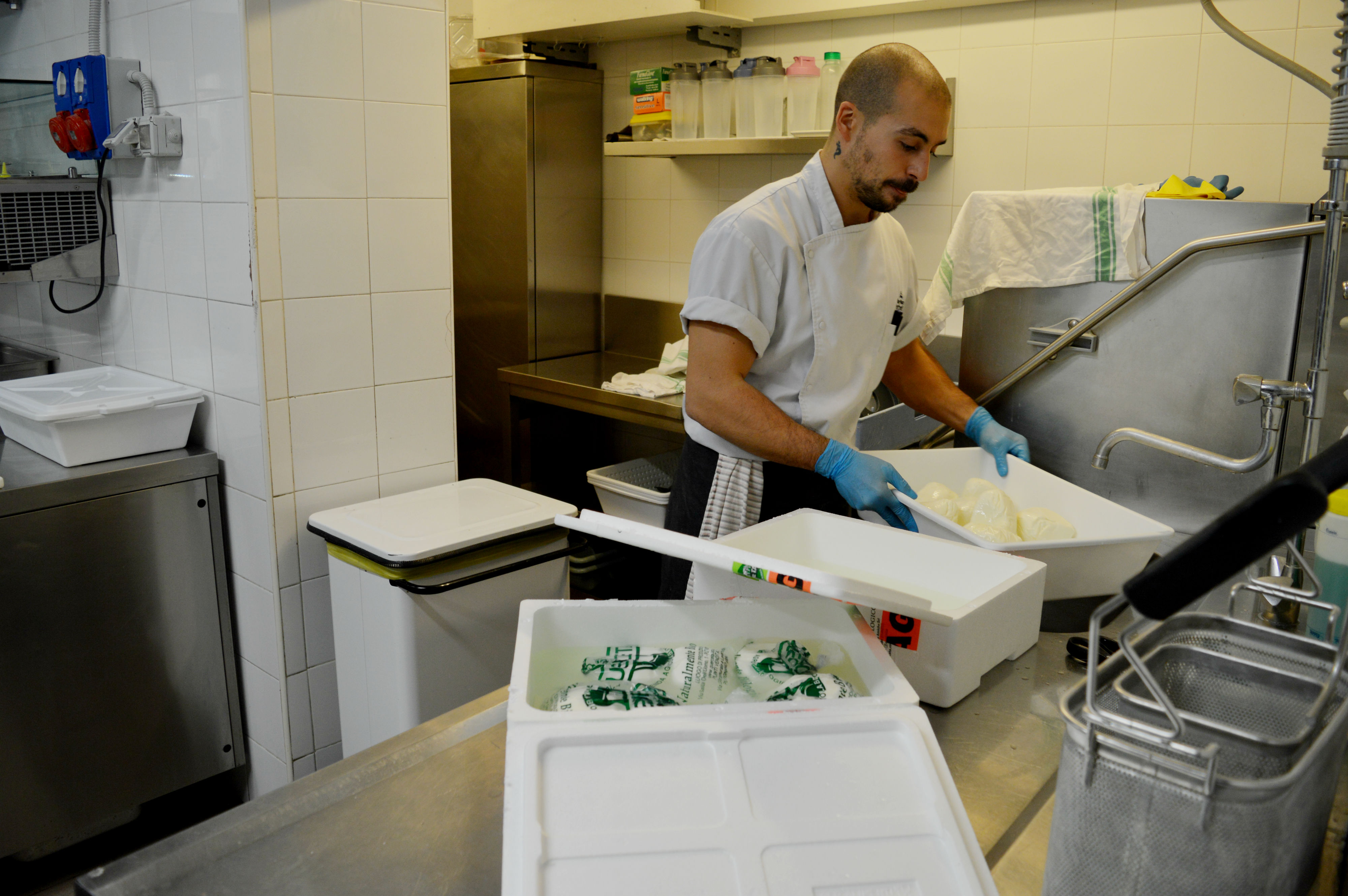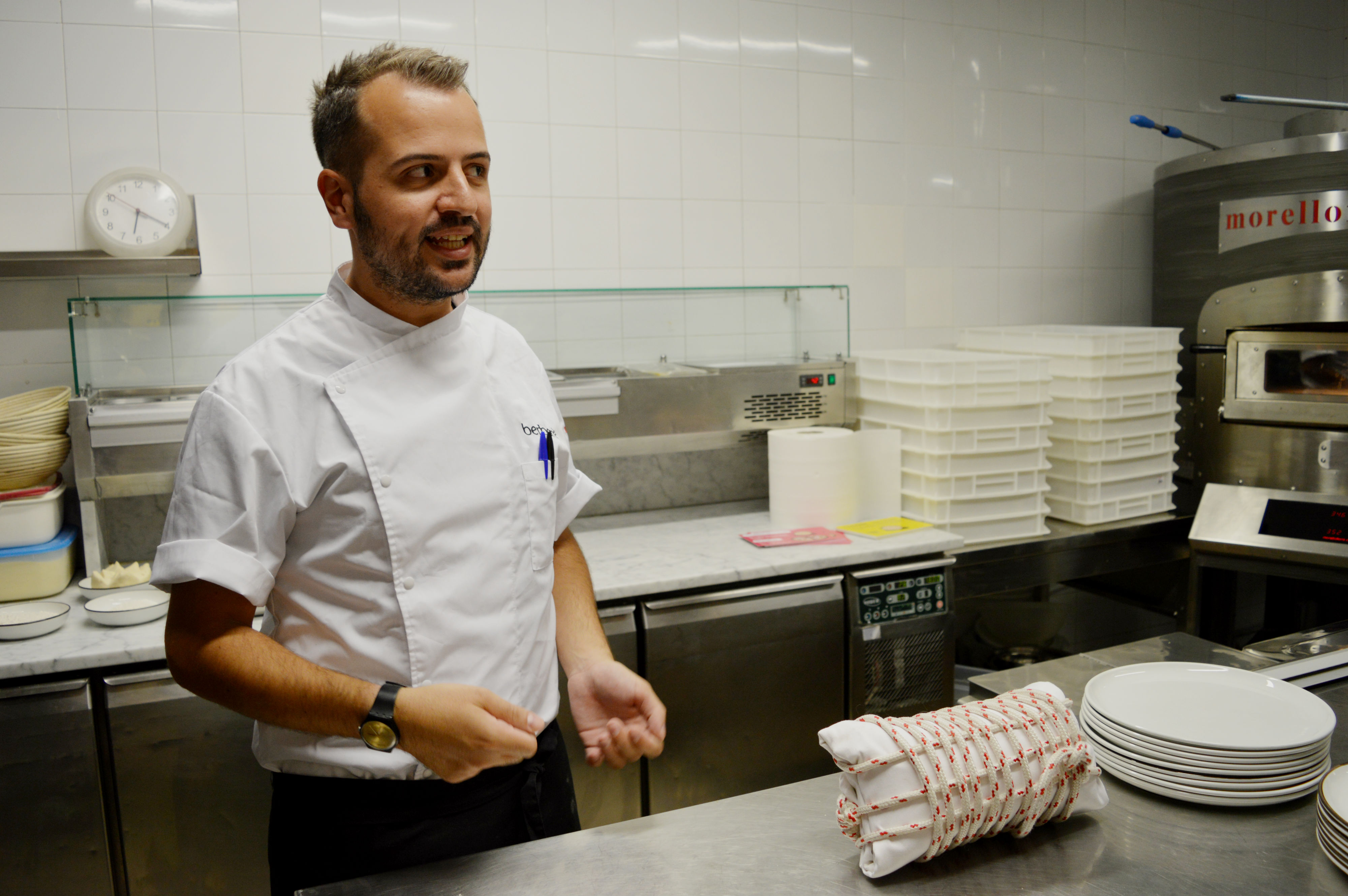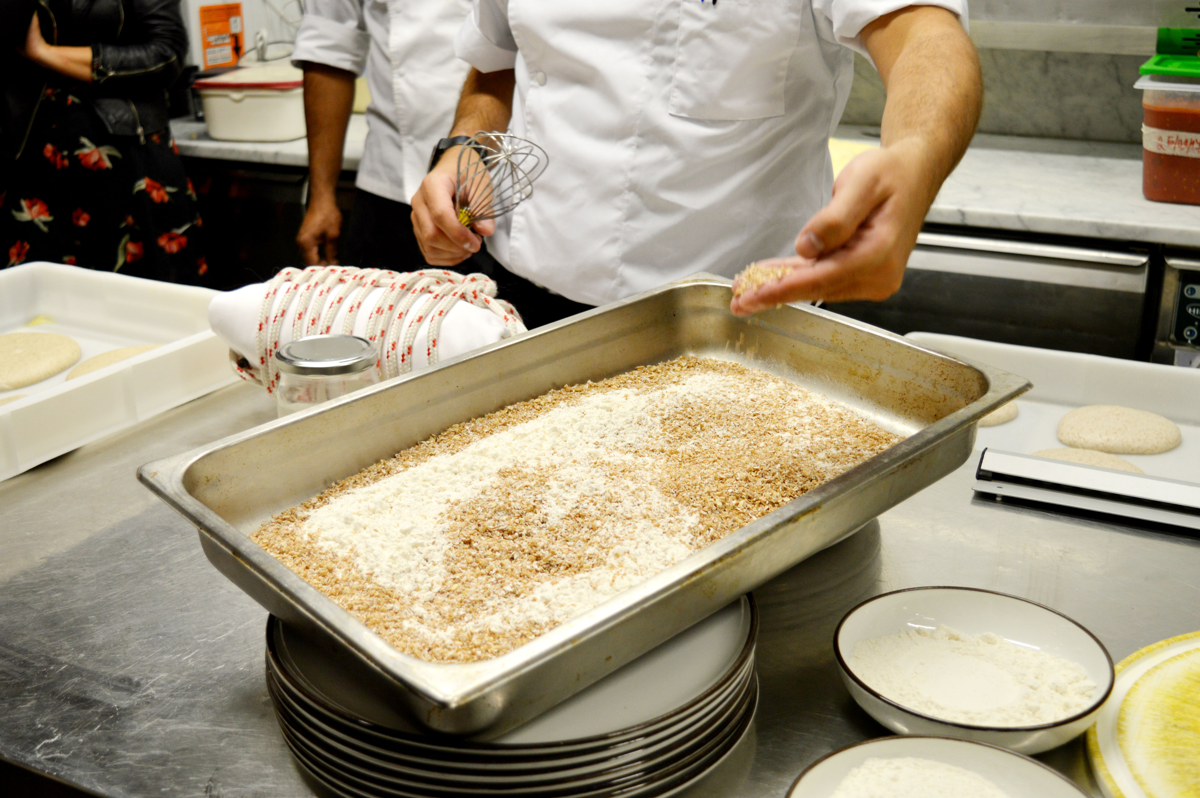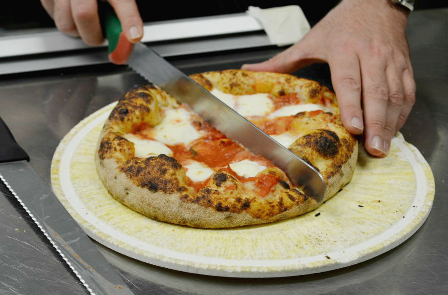 Cosa abbiamo imparato? Ognuna delle palline di impasto pesa 280g. Tre tecniche diverse per offrire tre tipi di impasto: quello classico – impasto diretto con solo lievito madre vivo e farina di tipo 1, 24h di fermentazione, a temperatura ambiente controllata – quello speciale, impasto indiretto realizzato con una biga di lievito madre, fatto con farine di diversi cereali, alternative al grano tenero, quali farro, Grano duro Senatore Cappelli, e l’idrolisi, realizzato lasciando fermentare il grano spezzato con l’acqua calda.