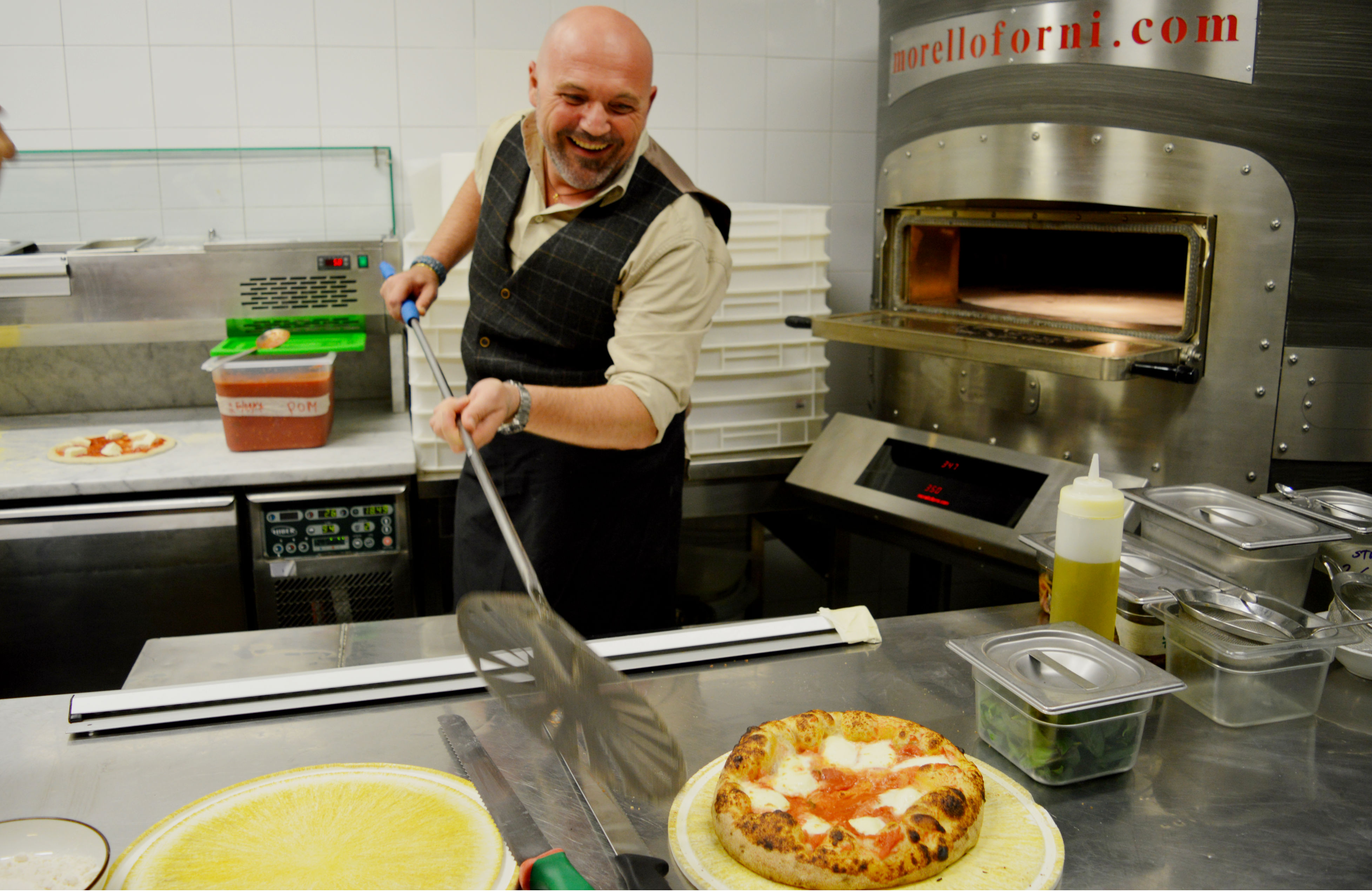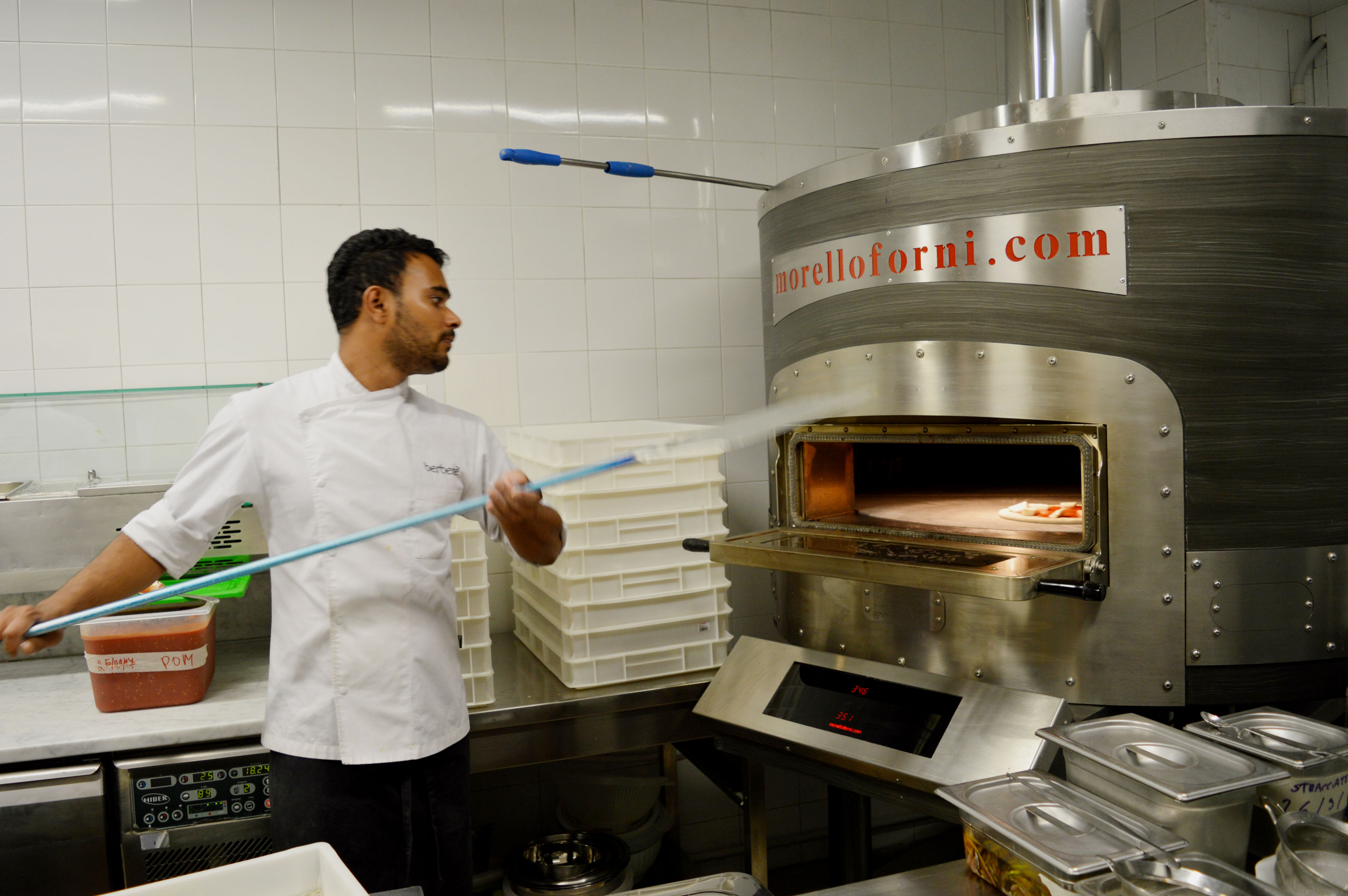E poi c’è lui sullo sfondo del locale. Uno straordinario forno elettrico di Morello Forni, testato già in occasione di Expo 2015, dalle caratteristiche tecnologiche avanzate e pietra di due tonnellate, capace di garantire una cottura della pizza di altissimi livelli e mantenere la temperatura costante a 320°C anche dopo numerose infornate.