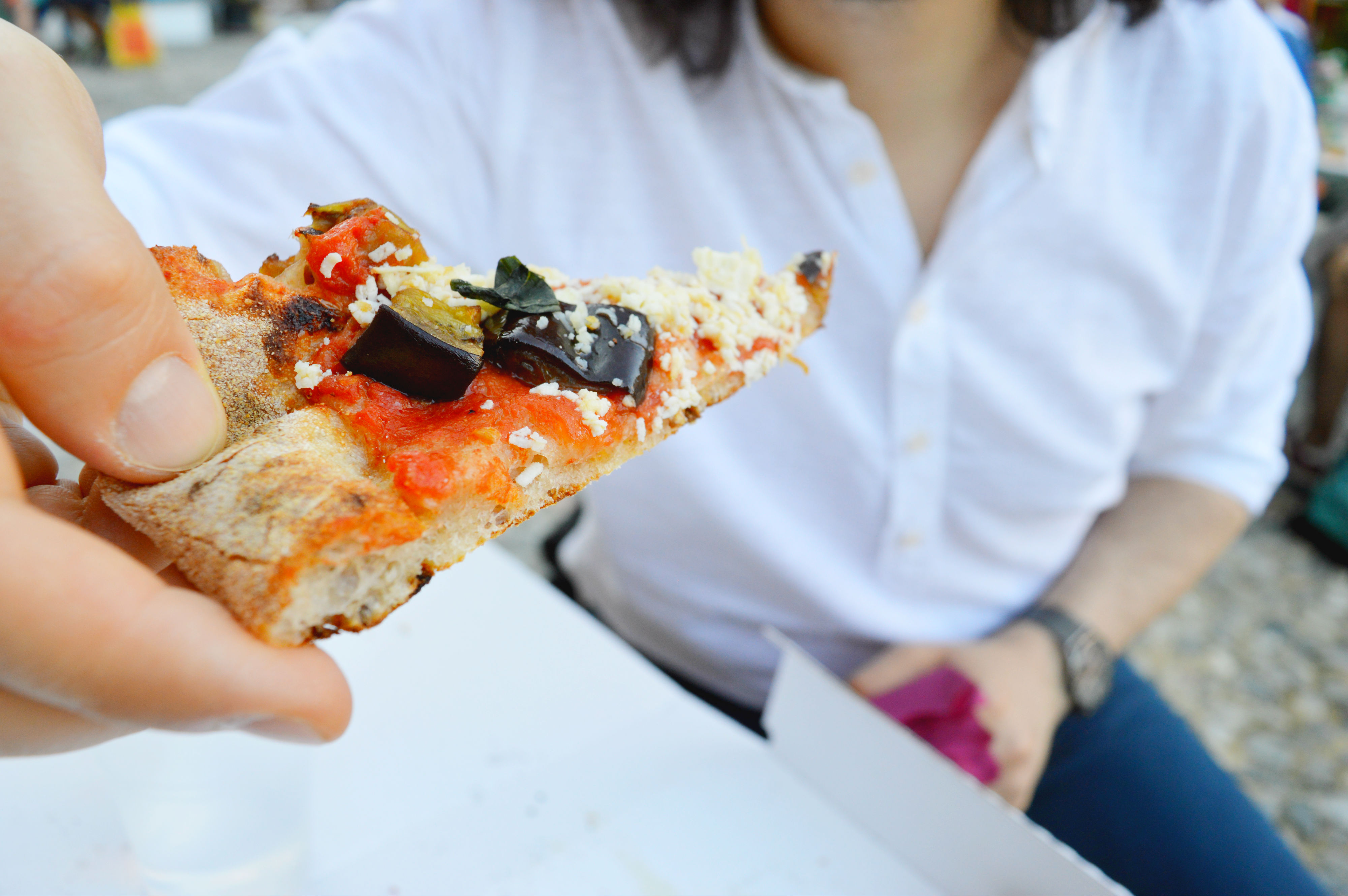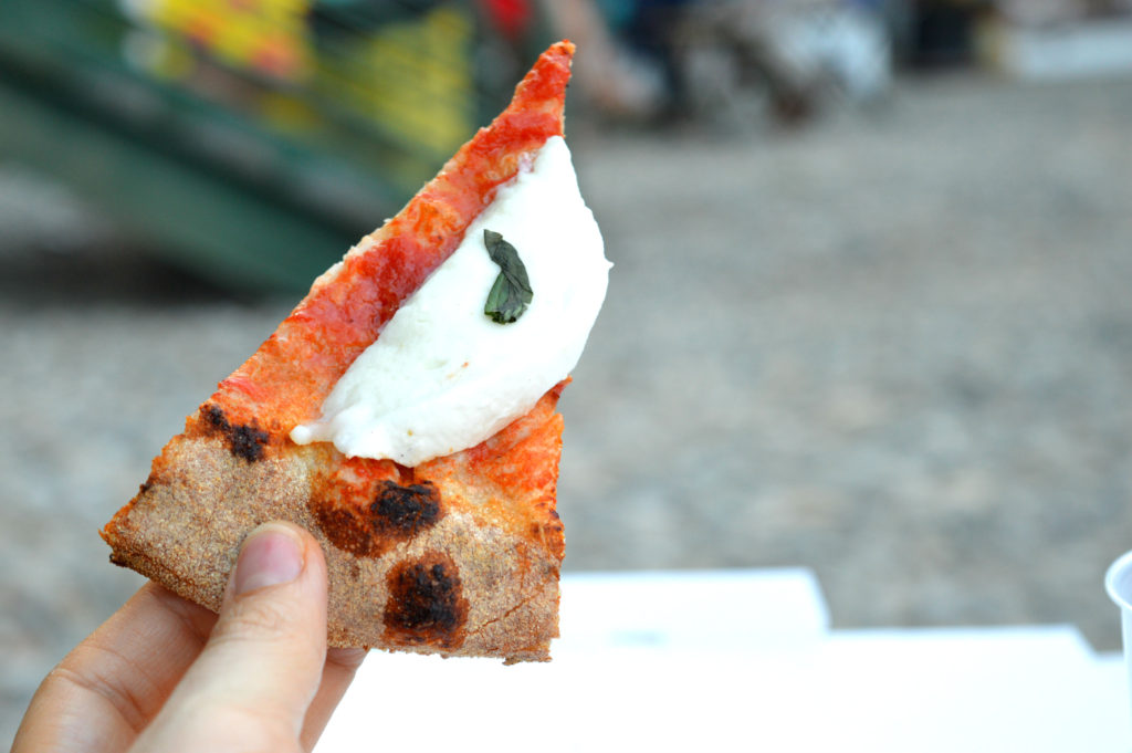 Quattro le proposte: Aglio, pomodoro, prezzemolo, Mozzarella di bufala di Caserta, pomodoro, basilico, Salsiccia di Mora Romagnola, pomodoro, parmigiano reggiano, semi di finocchio, Melanzane, pomodoro, ricotta affumicata, basilico.