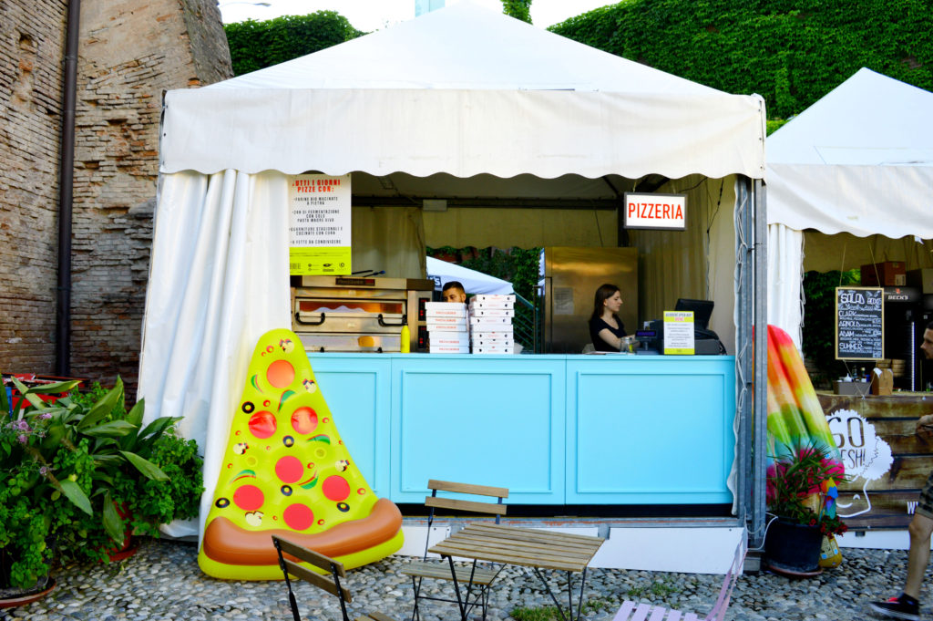 E allora indugiamo con piacere su questa estate. Perché la pizzeria dei fratelli Matteo e Salvatore Aloe nel cuore universitario di Bologna e a Castel Maggiore – prendete appunti, due sedi a Milano, una a Roma, Torino, Firenze, l’ultima a Verona e due anche a Londra – premiata con i tre spicchi dal Gambero Rosso ha deciso di sfidare il caldo con un pop up colorato all’aperto all’interno de L’altra Sponda, la rassegna che il Cassero ha ideato al Giardino del Cavaticcio, nel cuore della Manifattura delle Arti.