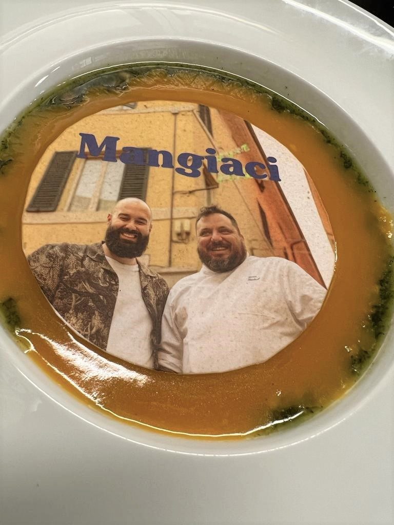 Proprio come abbiamo fatto noi tra lo Sformatino di Parmigiano Reggiano, bruciatini di Mortadella e insalata di spinaci, la Cotoletta alla Bolognese, la Vellutata di zucche vuote… mangiaci, e la salsiccia di loro produzione con cime di rapa e purè di fave.