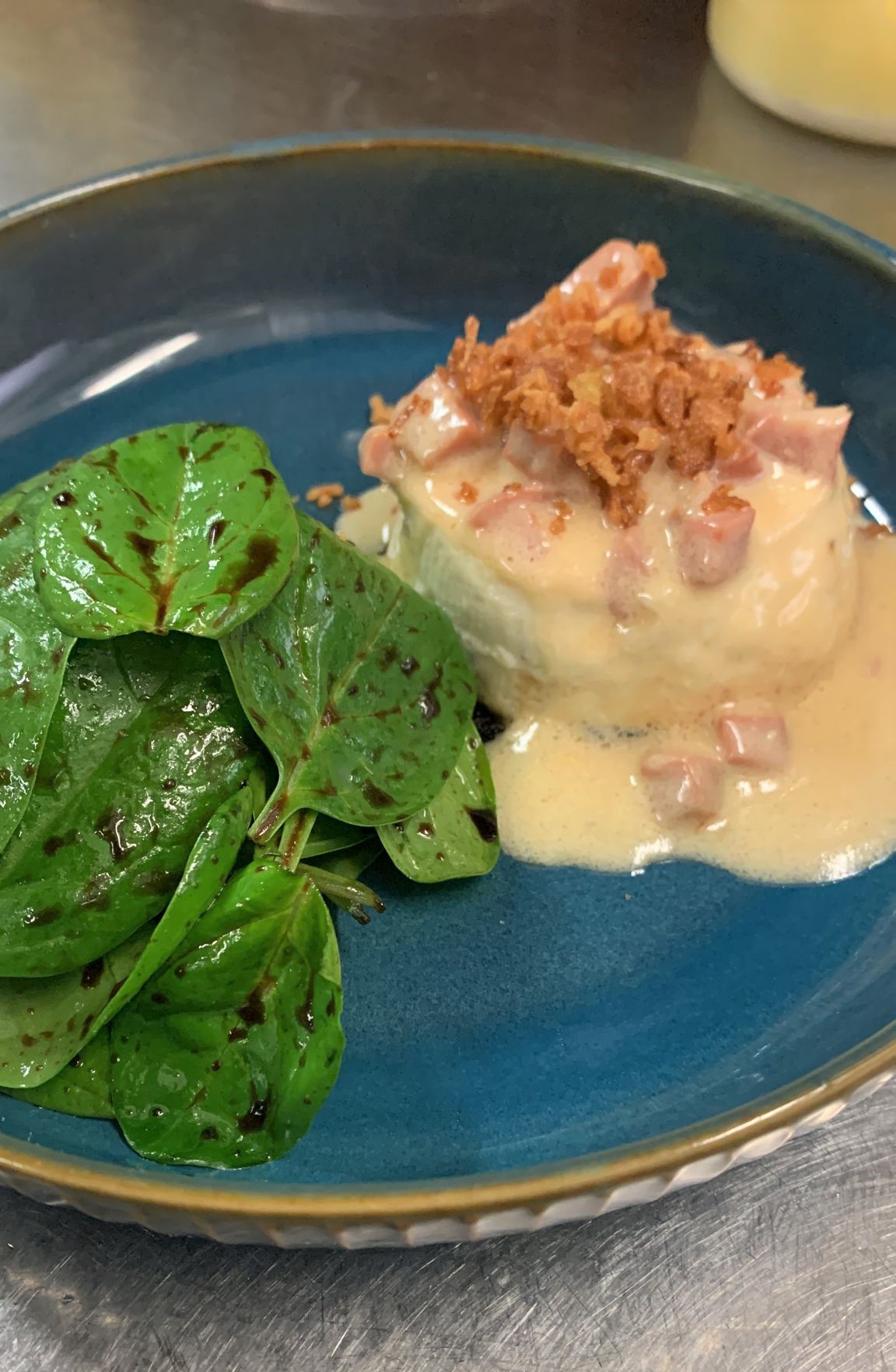 Quelli delle Ruote pazze Benedetto Cavalieri anni 80 alla Vodka. Del Poldino alla Bolognese con il ripieno dei tortellini, ketchup di friggione, crosta di Parmigiano e salsa verde.
