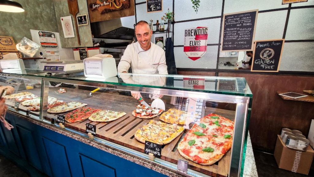 La pizza romana da passeggio, quella “alla pala” e servita in tranci.