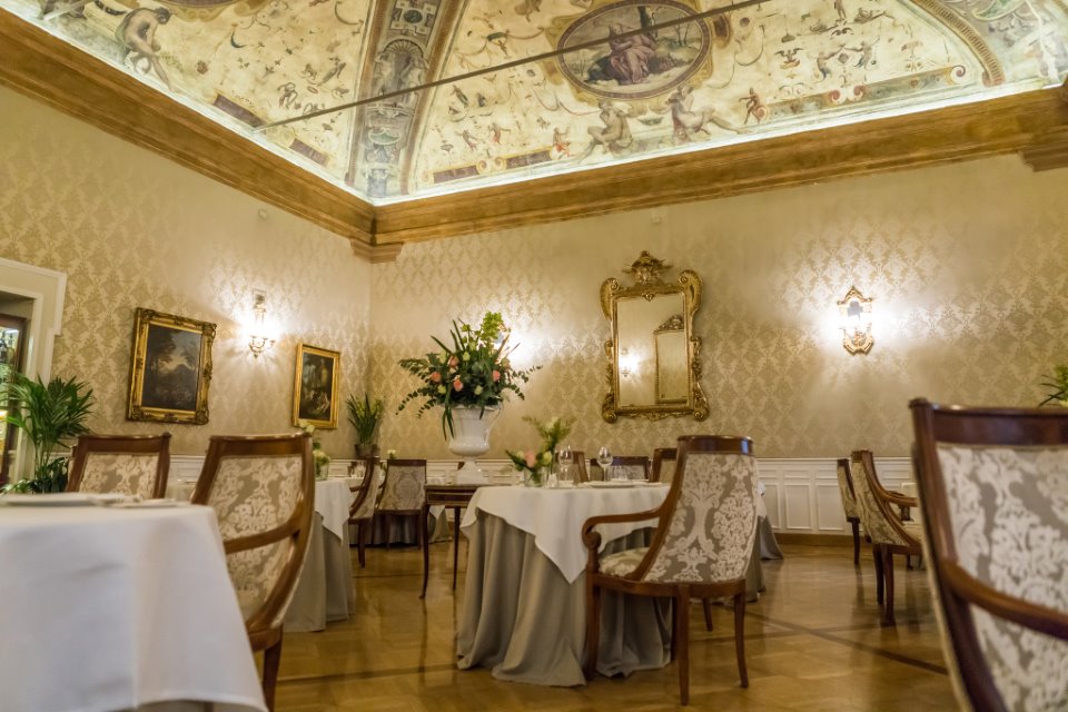 Perché scegliere il Grand Hotel Majestic “già Baglioni”? Per la sala del ristorante, nel cuore della città, a due passi da Piazza Maggiore, che custodisce gli affreschi dei fratelli Annibale e Agostino Carracci. Una scenografia di eleganza incomparabile, in grado di accogliere fino a 70 ospiti. Non solo: al piano nobile dell’hotel, vi è un altro capolavoro, sempre dei Carracci: il “Camerino d’Europa”, originale del XVI secolo.