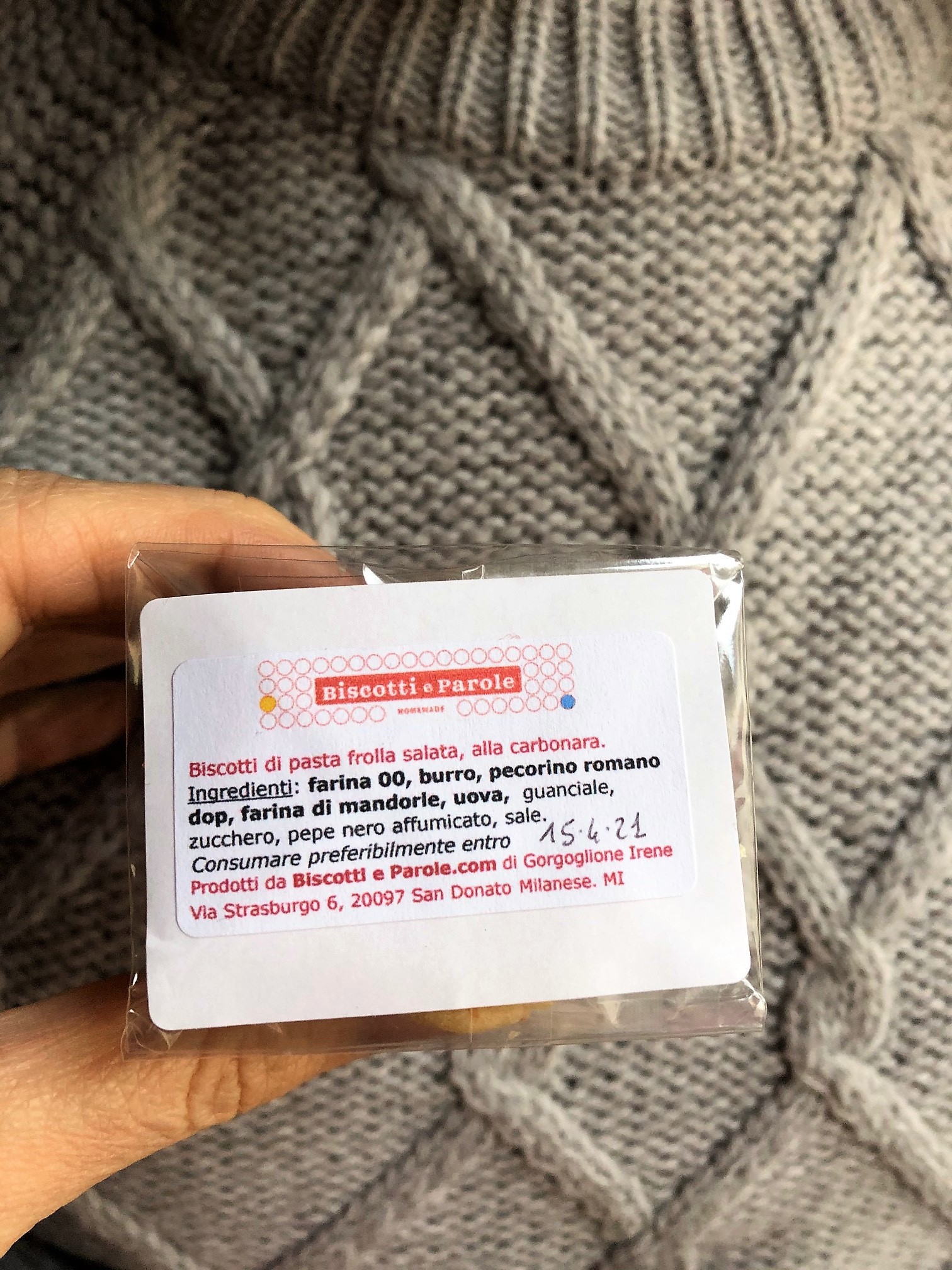 La linea gourmet salata prevede due esclusive ricette dal gusto intenso, bilanciato ed elegante: biscotti di frolla alla Carbonara con pecorino, guanciale croccante e pepe affumicato al legno di melo;  biscotti di frolla alle arachidi tostate, parmigiano e burro di arachidi.