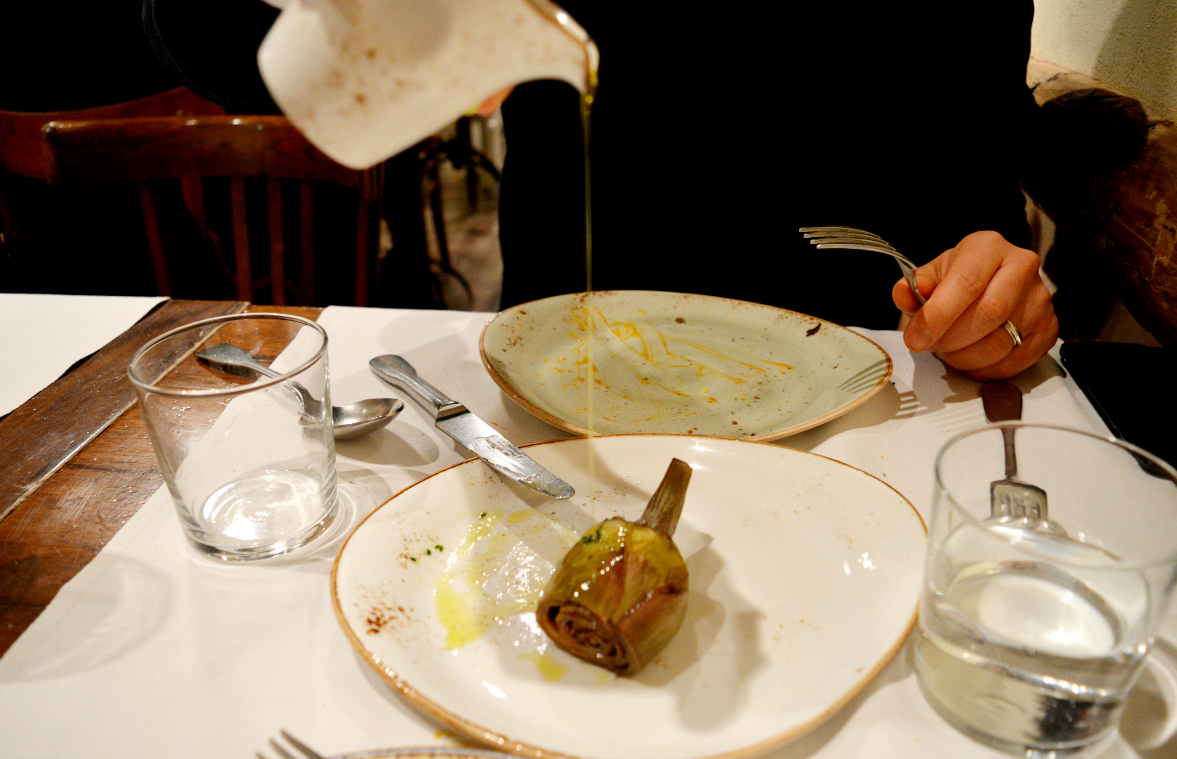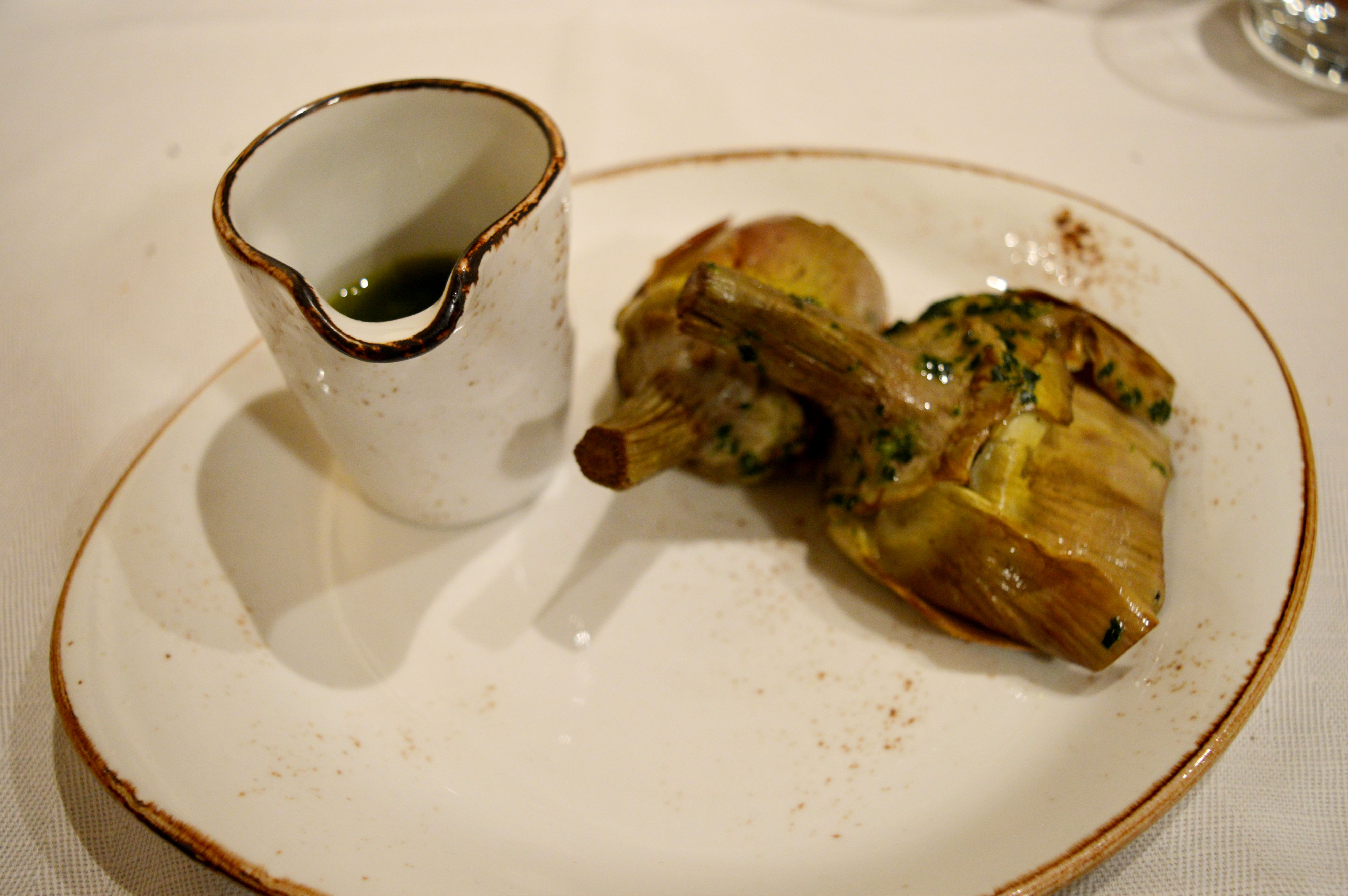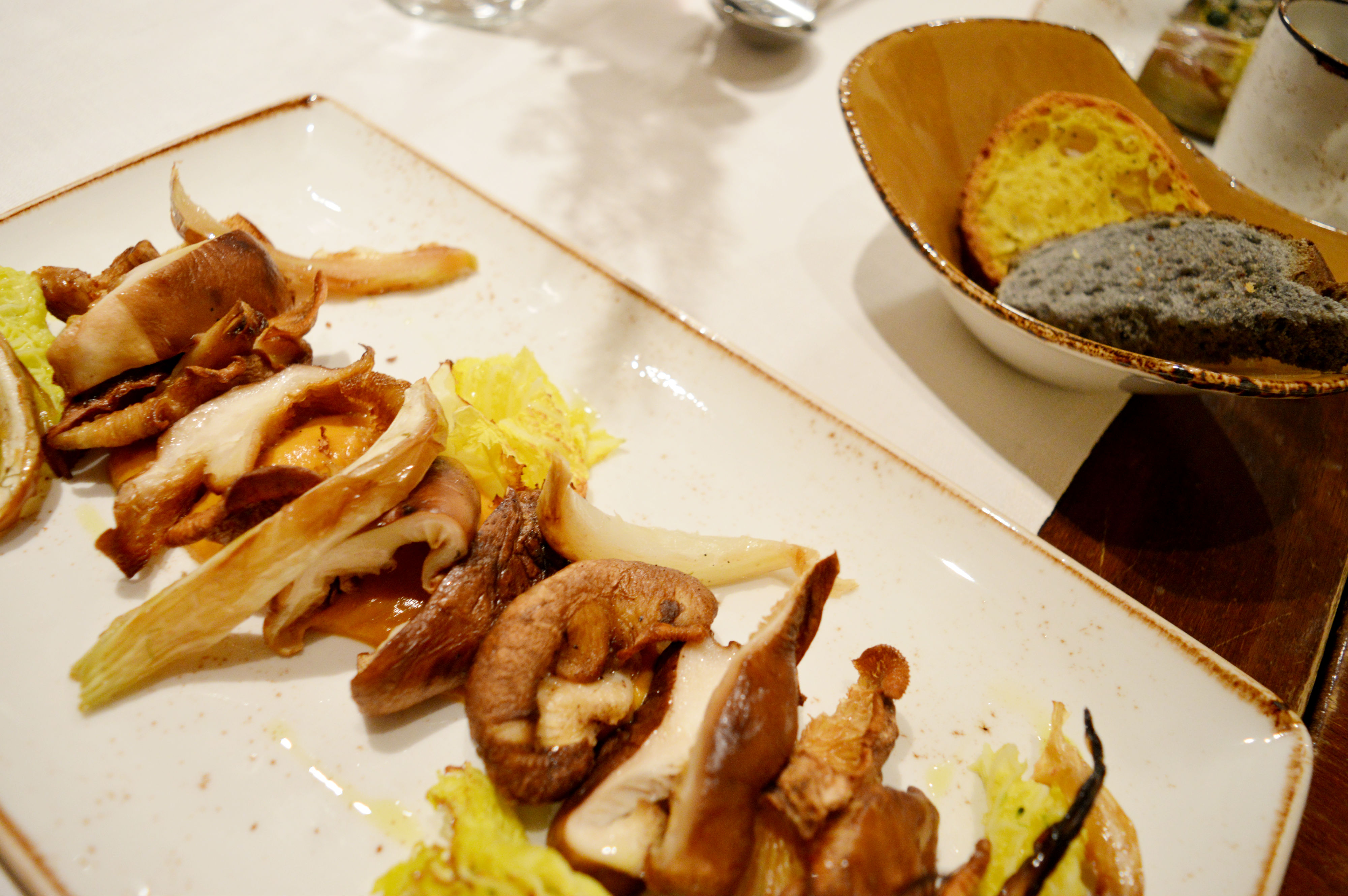 Sformato di zucca su fonduta leggera di ricotta salata e pinoli tostati; “Tagliata” di funghi shiitake bio su crema di zucca la parmigiano e finocchi arrostiti; Carciofi stufati, aglio olio e rosmarino.