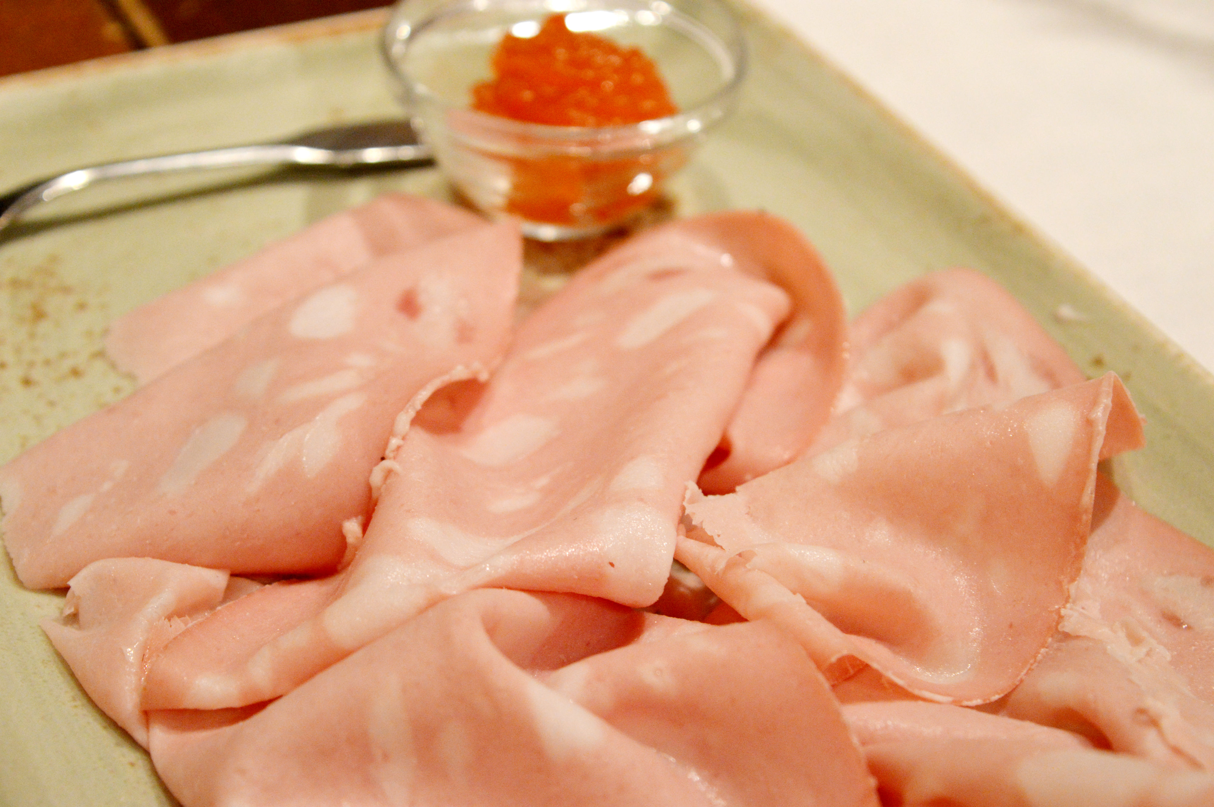 La cena, sì. Mortadella Igp Bologna (Villani), carne magra di suino, trippino, e lardello insaccati in budello naturale accompagnata da mostarda di zucca; Involtino “Bolognese” con ricotta e spinaci su crema di patate alla salvia.