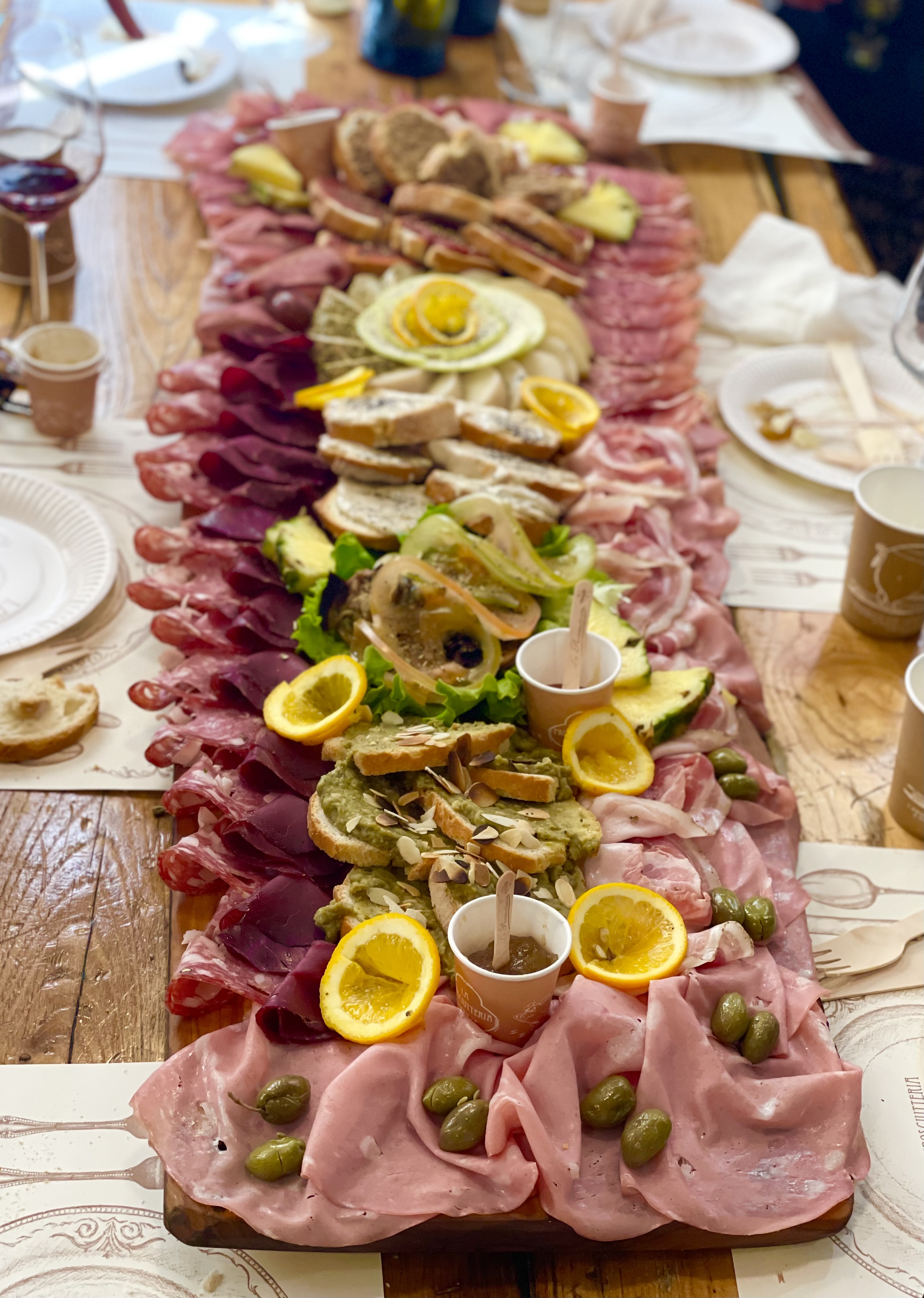 In mancanza di un metro da sarta, di fronte ai taglieri firmati La Prosciutteria Bologna ci si può fidare della vista: sono reali e interminabili.