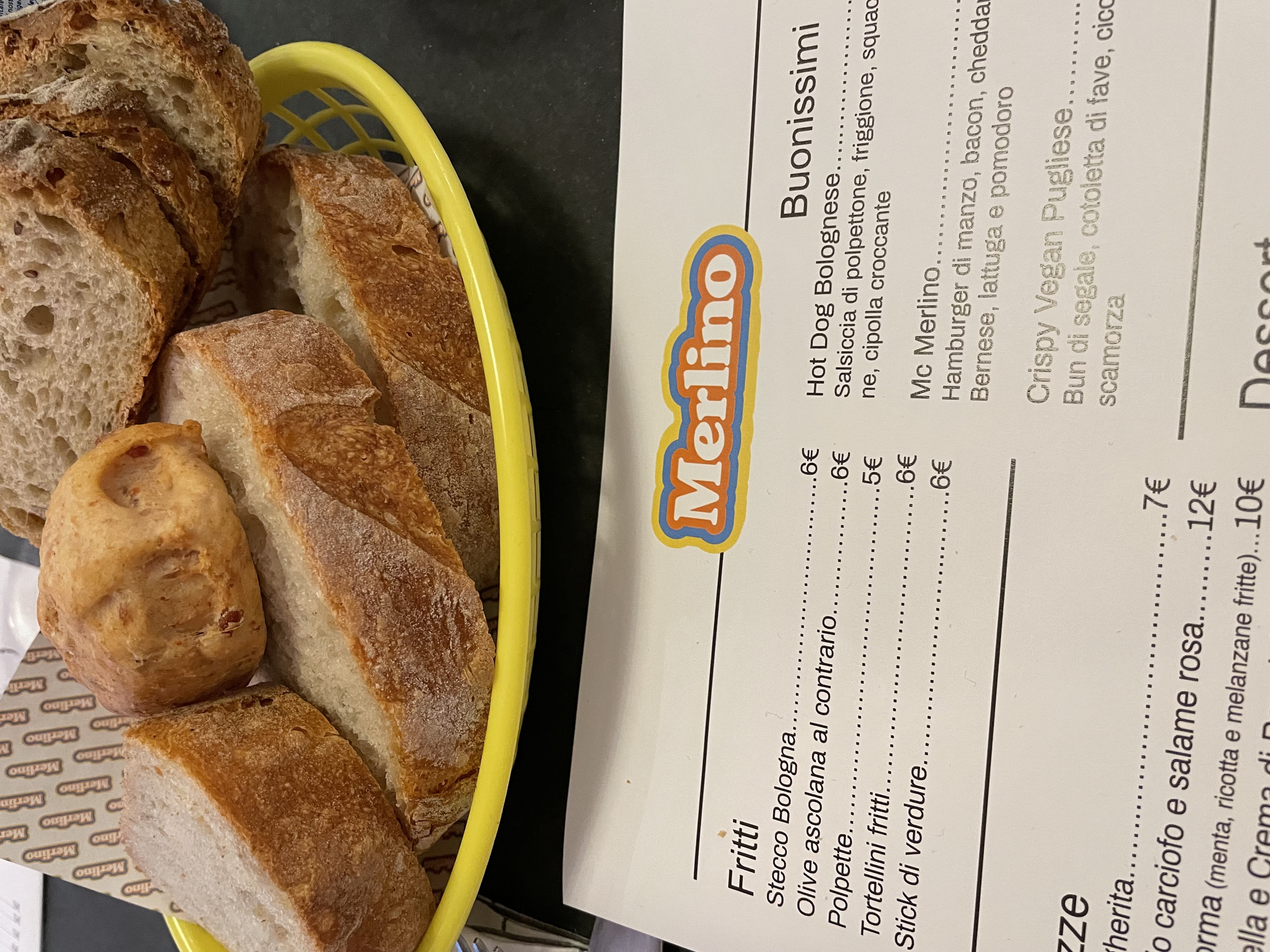 E poi da Merlino, con la splendida Jaqueline in sala, si bevono birre e vini artigianali, si compra il pane appena sfornato e la pasta fresca. Nel team, vi sono infatti un panettiere esperto e un super sfoglino, per cui pane e pasta sono fatti in casa.