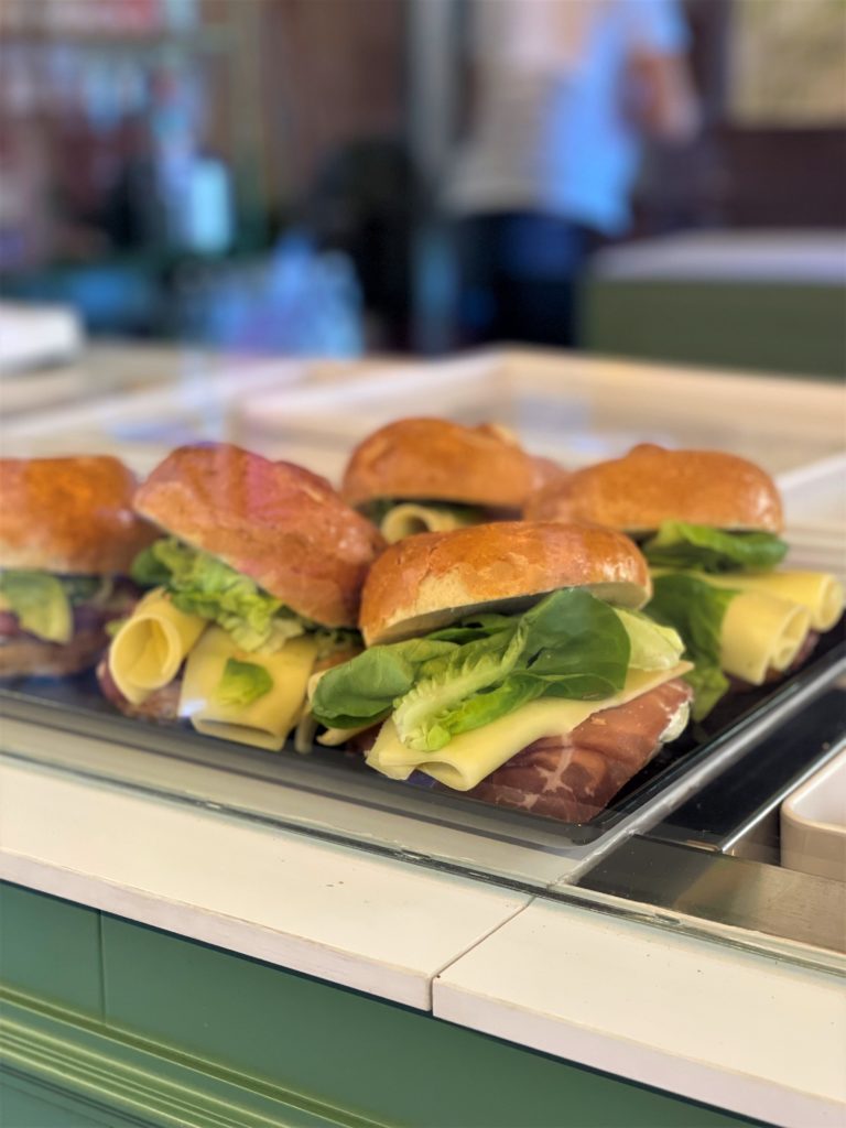 Granita e Brioscia col tuppo, la Moka e le Pastarelle, la Schiscetta con un perfetto bilanciamento di frutta e verdura, cannoli alla ricotta, cocktail, Sushi vegano, brioscia col tuppo in tante versioni salate, ripiena ad esempio di carne salada, oppure di speck di tonno, caprino, peperoni all’olio di sesamo tostato. Tutto con le materie prime migliori. E poi vino naturale, bio e la birra Isabel.