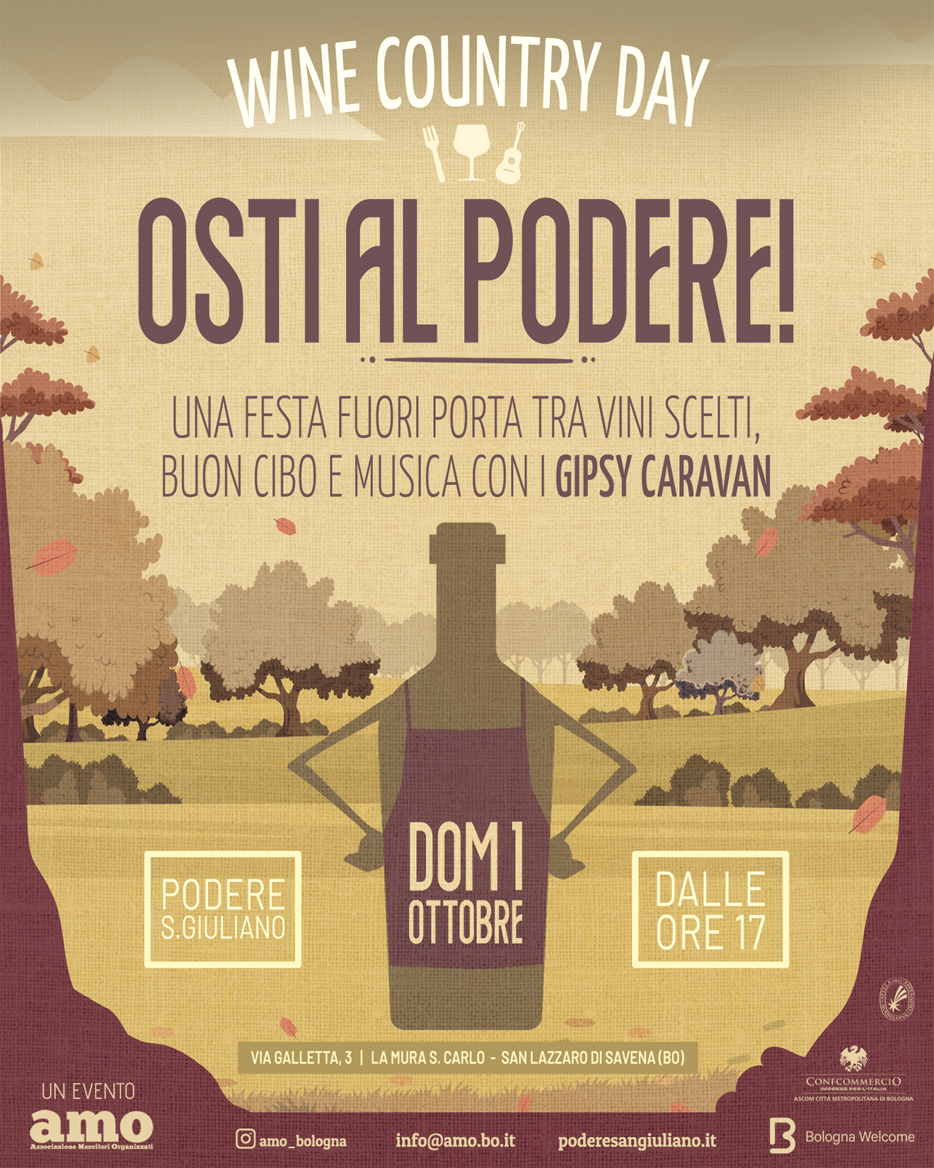 Appuntamento domenica 1 ottobre con Osti al Podere! – Wine Country Day a Podere san Giuliano, San Lazzaro, dalle ore 17.00 con il sostegno di Ascom Bologna, Bologna Welcome e eXtraBo.