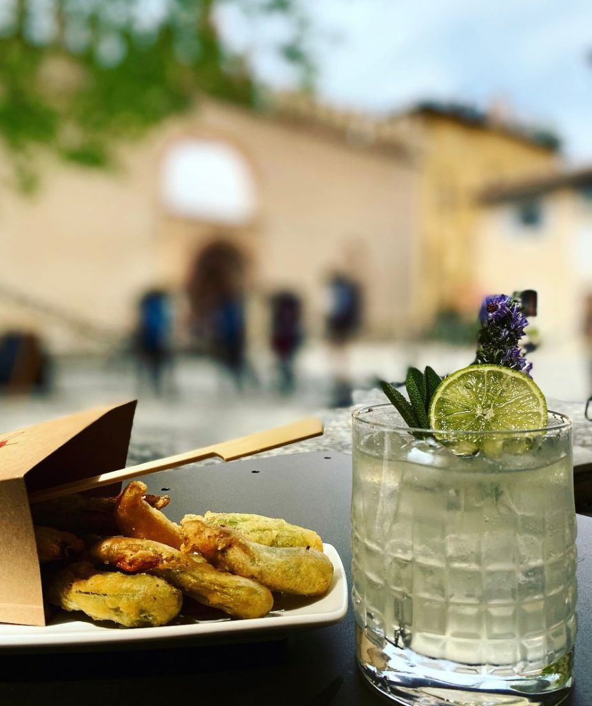 Qui è possibile sorseggiare ottimi cocktail classici o scegliere tra i 10 signature drink di Alice Angelico da accompagnare a tortellini fritti, bocconcini di crescenta con spuma di mortadella, fiori di zucca pastellati, olive ascolane o la box aperitivo: scaldalupi, olive baresi, scaglie di biancoemilia.
