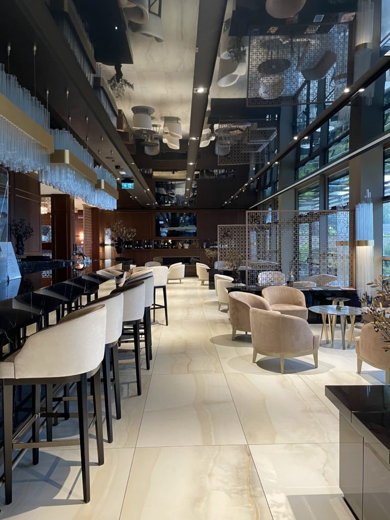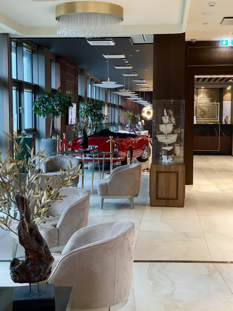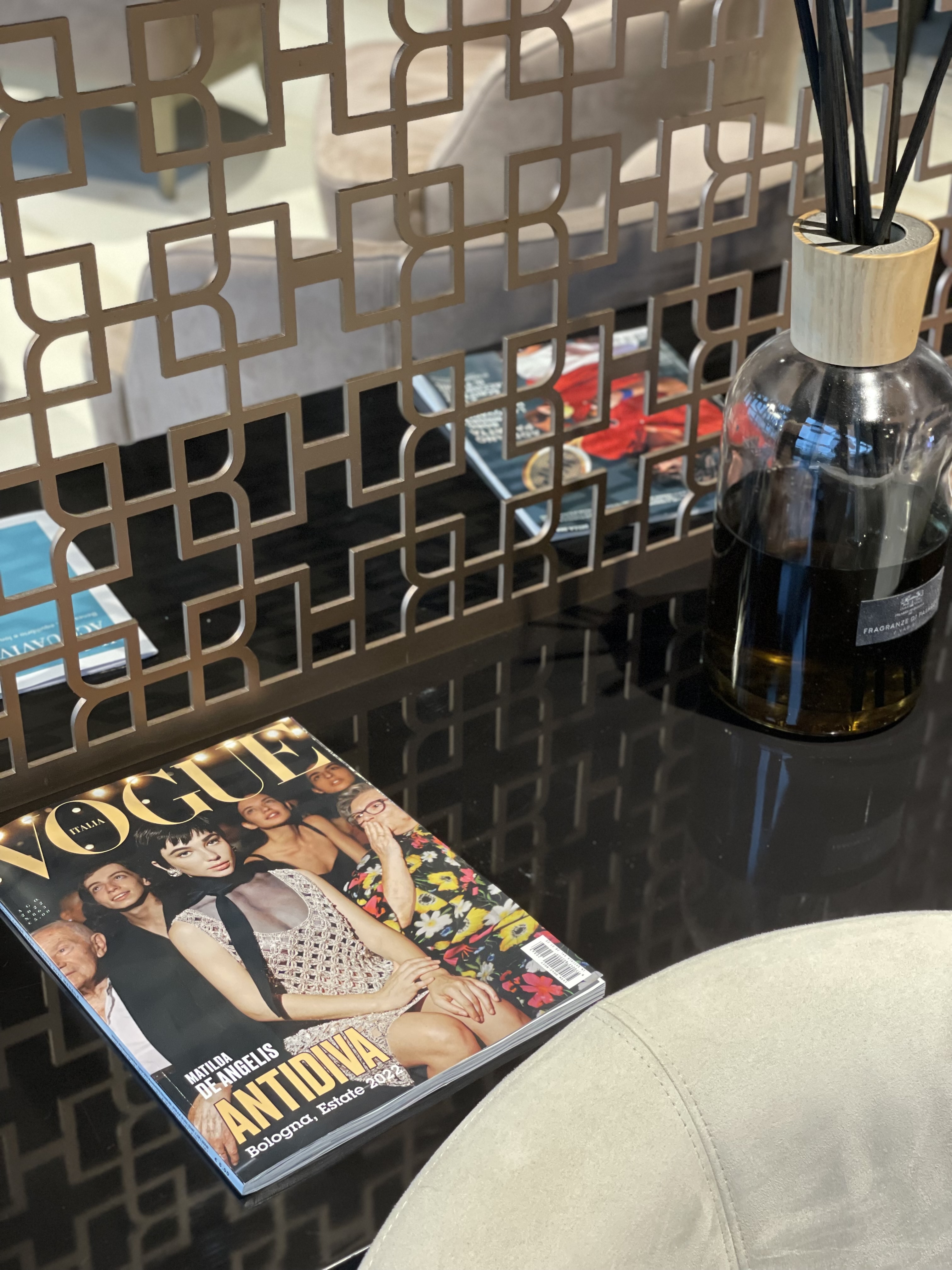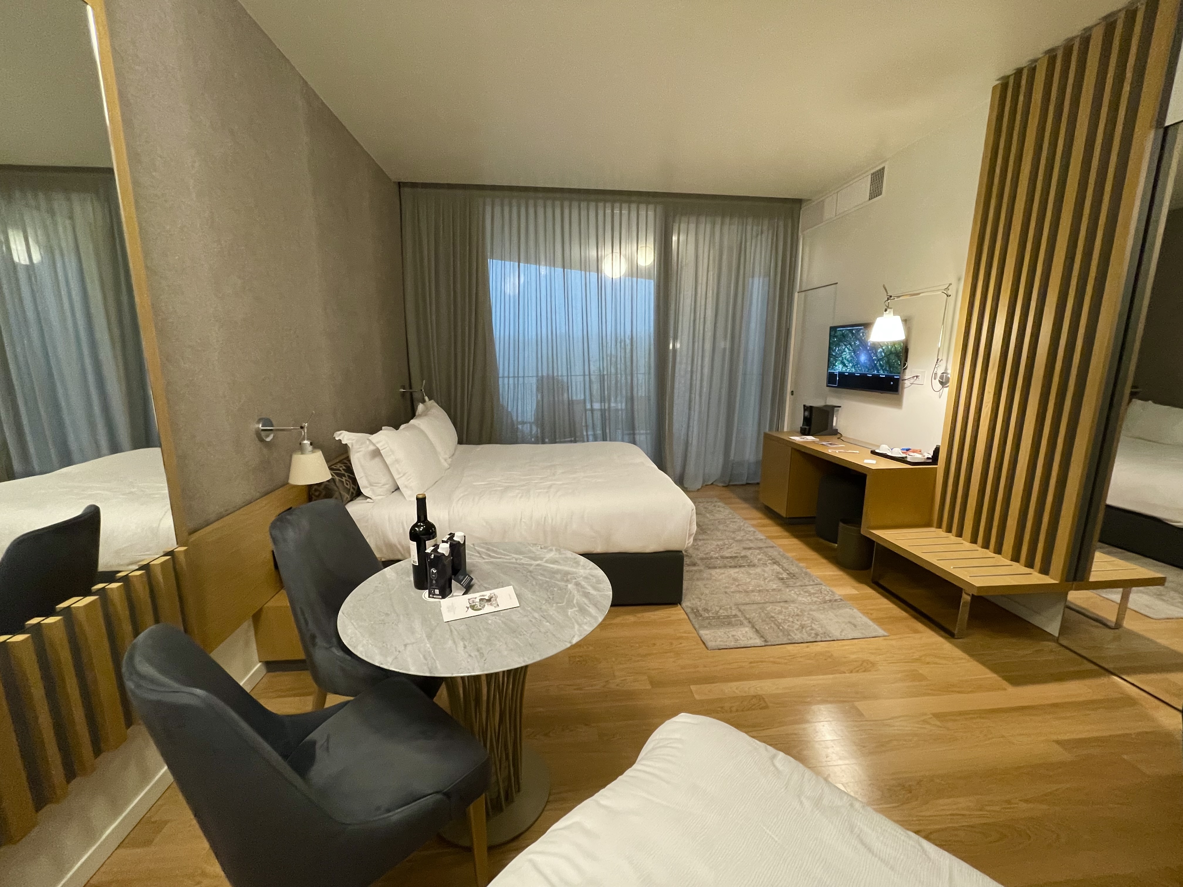 La magia silenziosa dei colli bolognesi l’abbiamo sperimentata sin dal nostro arrivo e ci ha decisamente colpito al mattino quando, svegliandoci, ci siamo trovati di fronte a un quadro vivente. Quello che ci offriva la vista della nostra Camera Deluxe Prestige. Riservatezza, colori caldi e brillanti, arredi design, grandi vetrate.