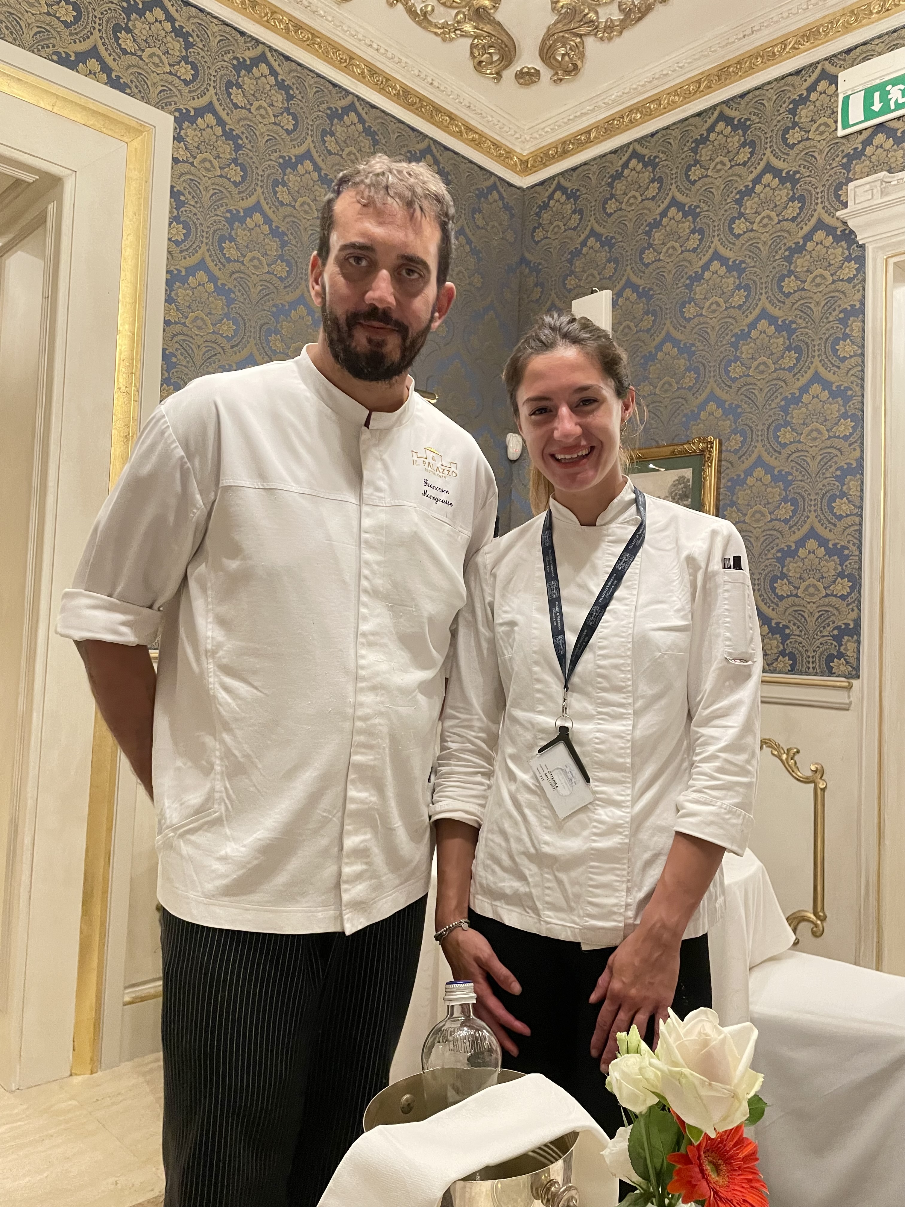 In sala, ad accompagnare la narrazione dal benvenuto al dessert, la maître Anna Leizeriuc, Lorenzo Bozzi, e quella sera come aiuto Giada Ciliberti. In cucina lo Chef Francesco Manograsso, la pasticciera Caterina Malaguti; ai primi Tiziano Cianci, agli antipasti Sara Francesconi.