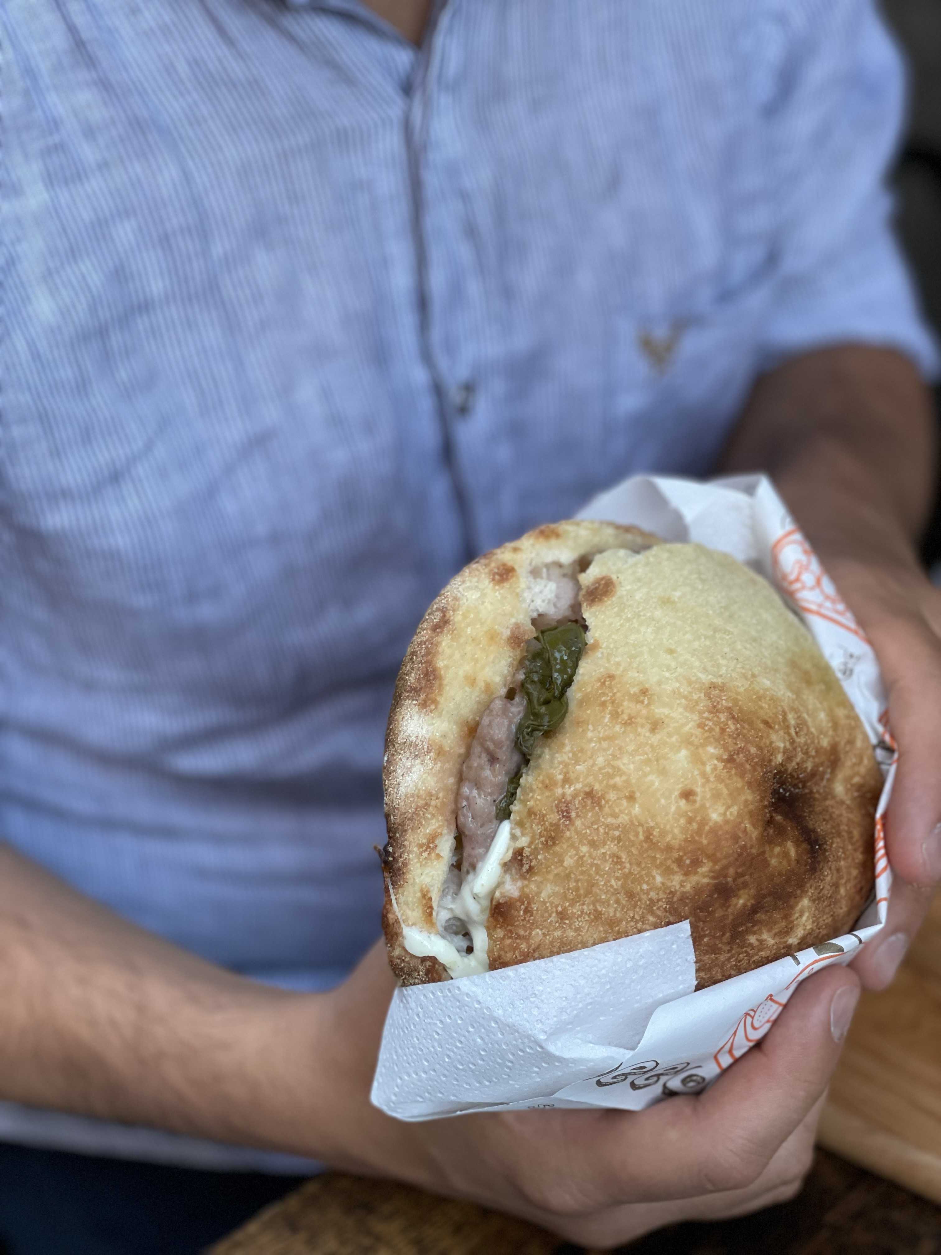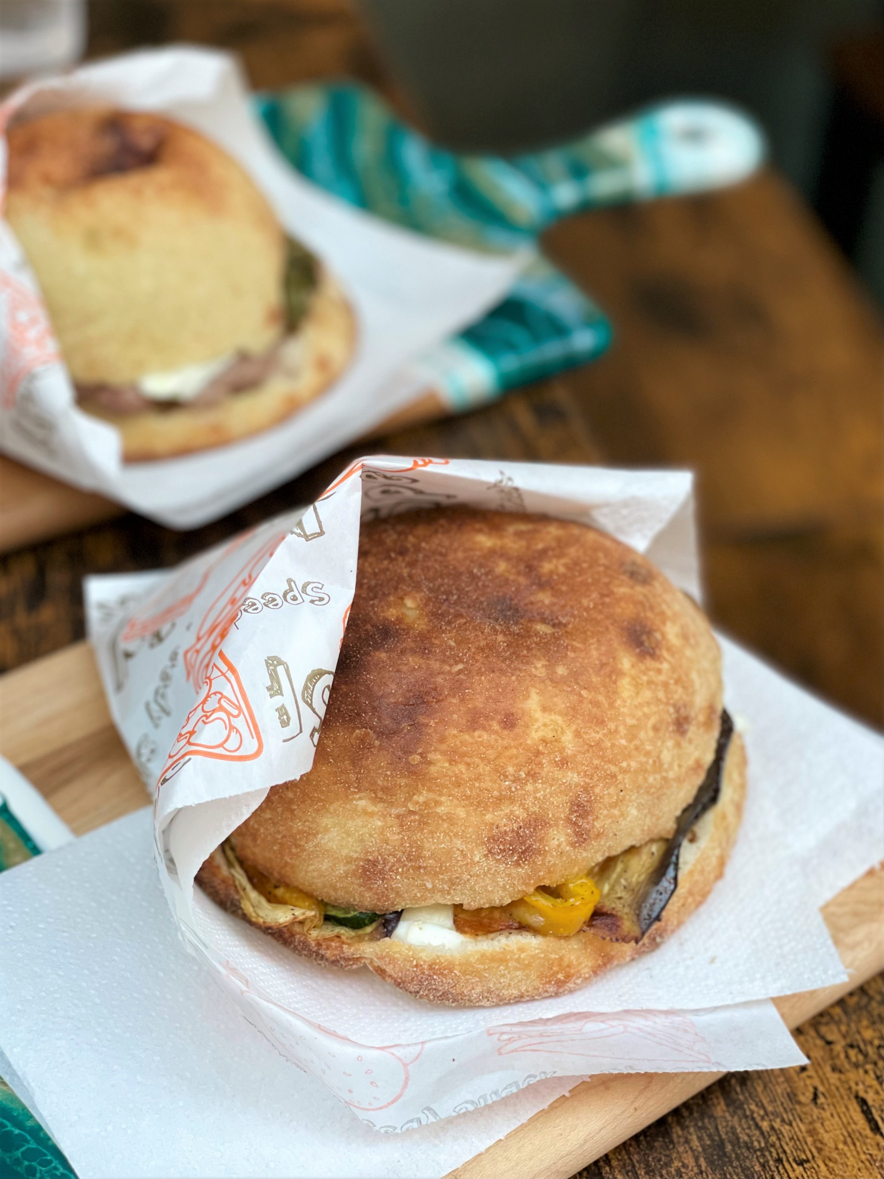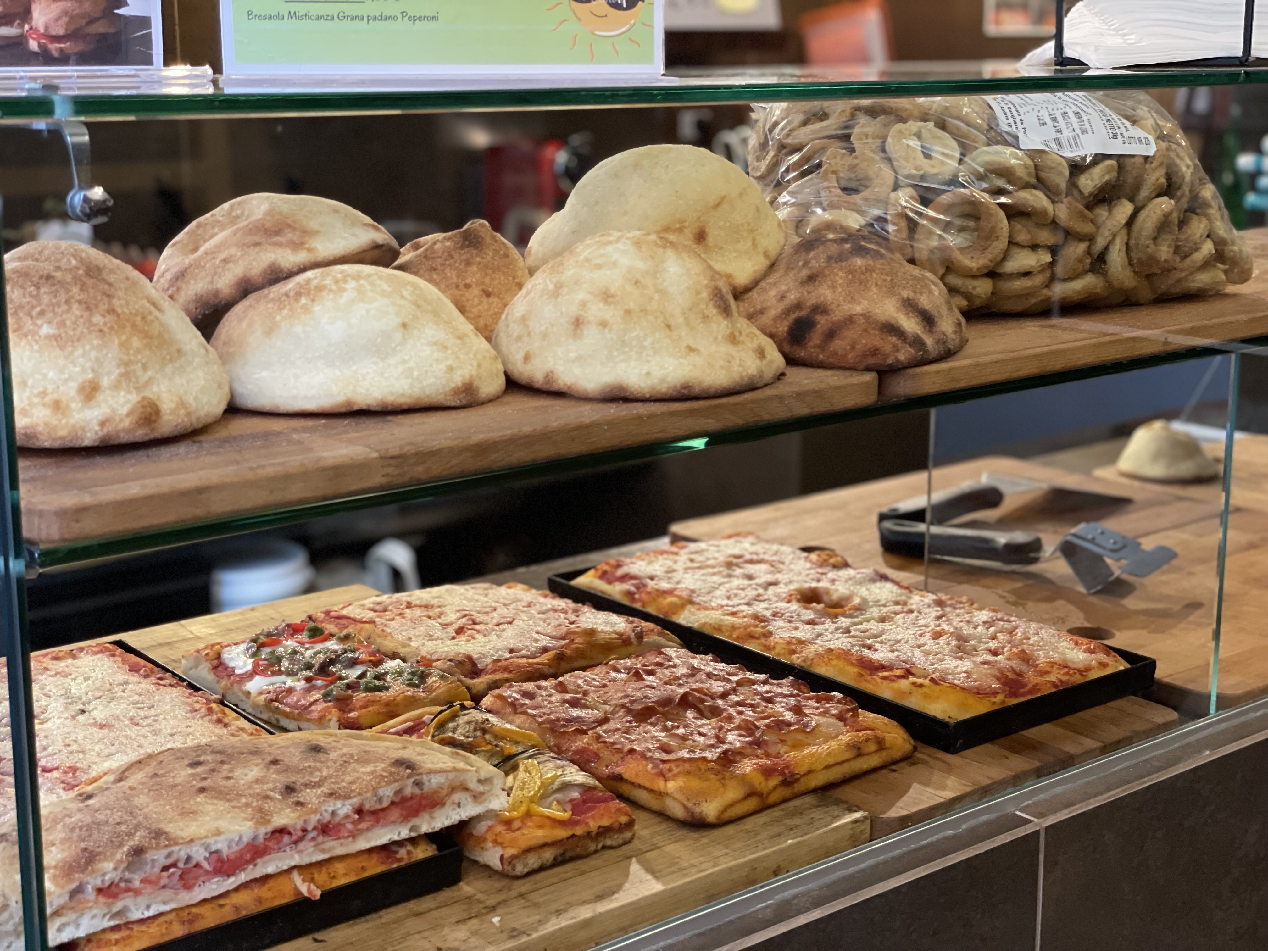 Tra le proposte, La Bombetta (involtini di manzo o manzo ripieni di prosciutto cotto e scamorza, patate fritte, misticanza, olio EVO), La BO (mozzarella di bufala DOP, mortadella IGP, crema di pistacchio), La Vegetariana (fior di latte, zucchine, melanzane, peperoni grigliati, olio EVO, La Genovese (Cipolla caramellata, pancetta arrotolata, burrata pugliese, pesto al basilico), La Tartufo (provola affumicata, speck del Trentino, crema di tartufo nero).