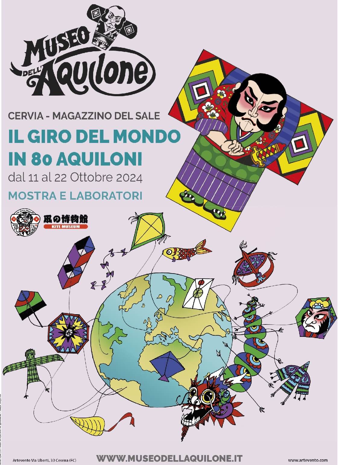 Alludendo al romanzo di Jules Verne e al valore antropologico dell’ammaliante oggetto volante, la mostra trova spazio ancora una volta all’interno del Magazzino del Sale Torre di Cervia, l’affascinate monumento di archeologia industriale costruito nel 1691 per lo stoccaggio dell’oro bianco. L’esposizione, interamente dedicata al Giappone, è realizzata con il patrocinio dell’Istituto Giapponese di Cultura in Italia, di ASCIG Associazione Scambi Culturali Italia e Giappone e della Japan Kite Association.