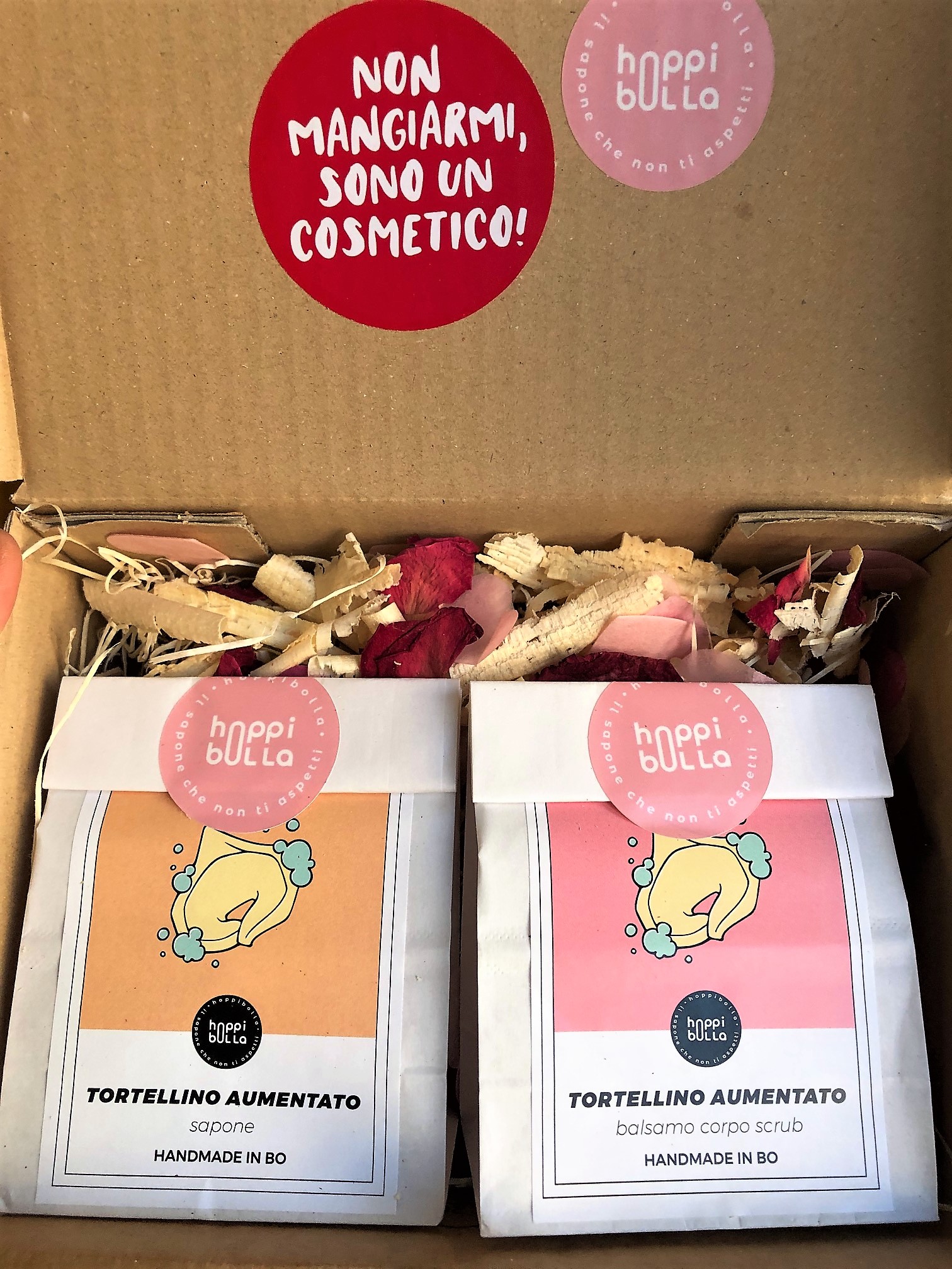 Tortellini su un letto di boccioli di rosa, trucioli di legno di pino cembro delle Alpi ed una cascata di leggiadri coriandoli e petali odorosi. Questa l’idea di filtro d’amore firmata HoppiBolla per San Valentino.