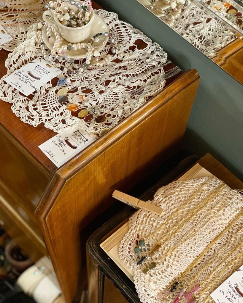 Orecchini, braccialetti e collane, collezioni di anni ’90 di ciucci, gioielli in argento, fasce ed elastici per capelli, cravatte in seta e non, pochette da borse nate da progetti di recupero, e tanto altro. Queste sono solo alcune delle idee regalo per Natale proposte da Francesca di Diorama Boutique, negozio indipendente dove vintage ed handmade si uniscono in un mix and match che cerca di rendere unico ogni outfit.