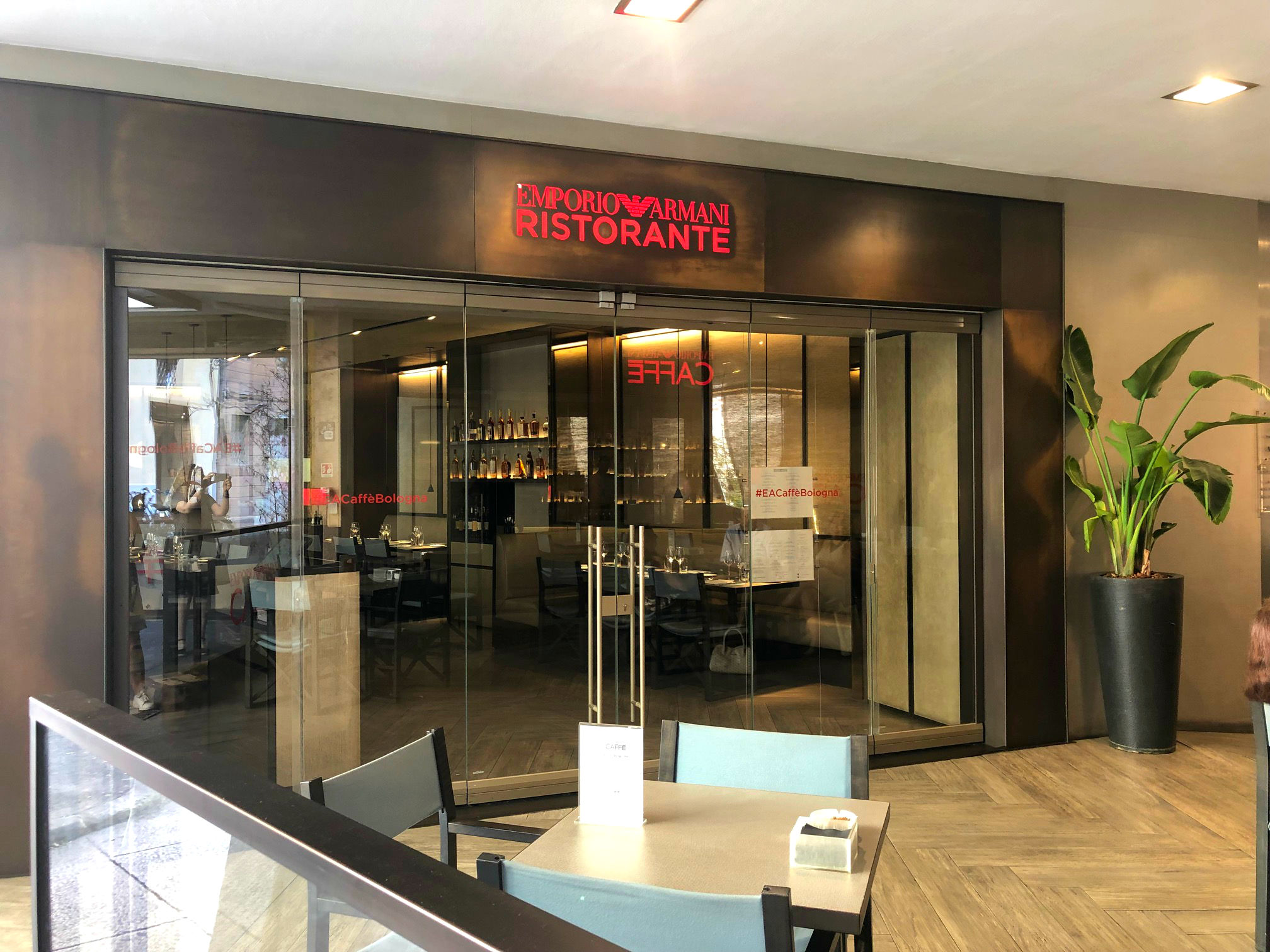 Il pranzo, dicevamo, presso l’Emporio Armani Caffè e Ristorante nella Galleria Cavour di Bologna.