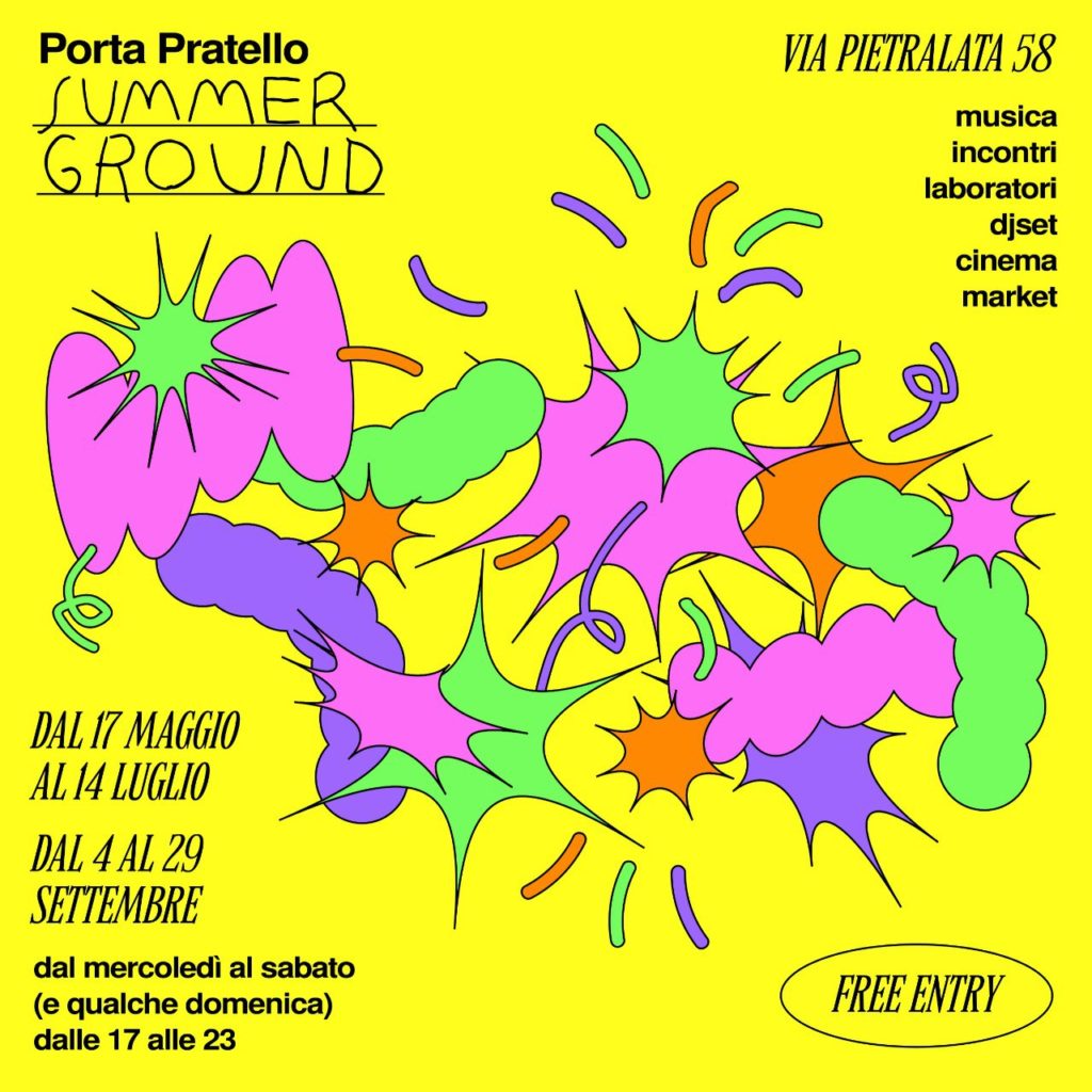 Porta Pratello Summer Ground, a ingresso gratuito, è organizzato da Arci Bologna e Caritas Bologna. Direzione artistica di Mercato Sonato, allestimenti e grafiche di Collettivo Franco. In cucina, Carina – Sfoglia Rina Pasta Bar, il pasta bar di Sfoglia Rina.