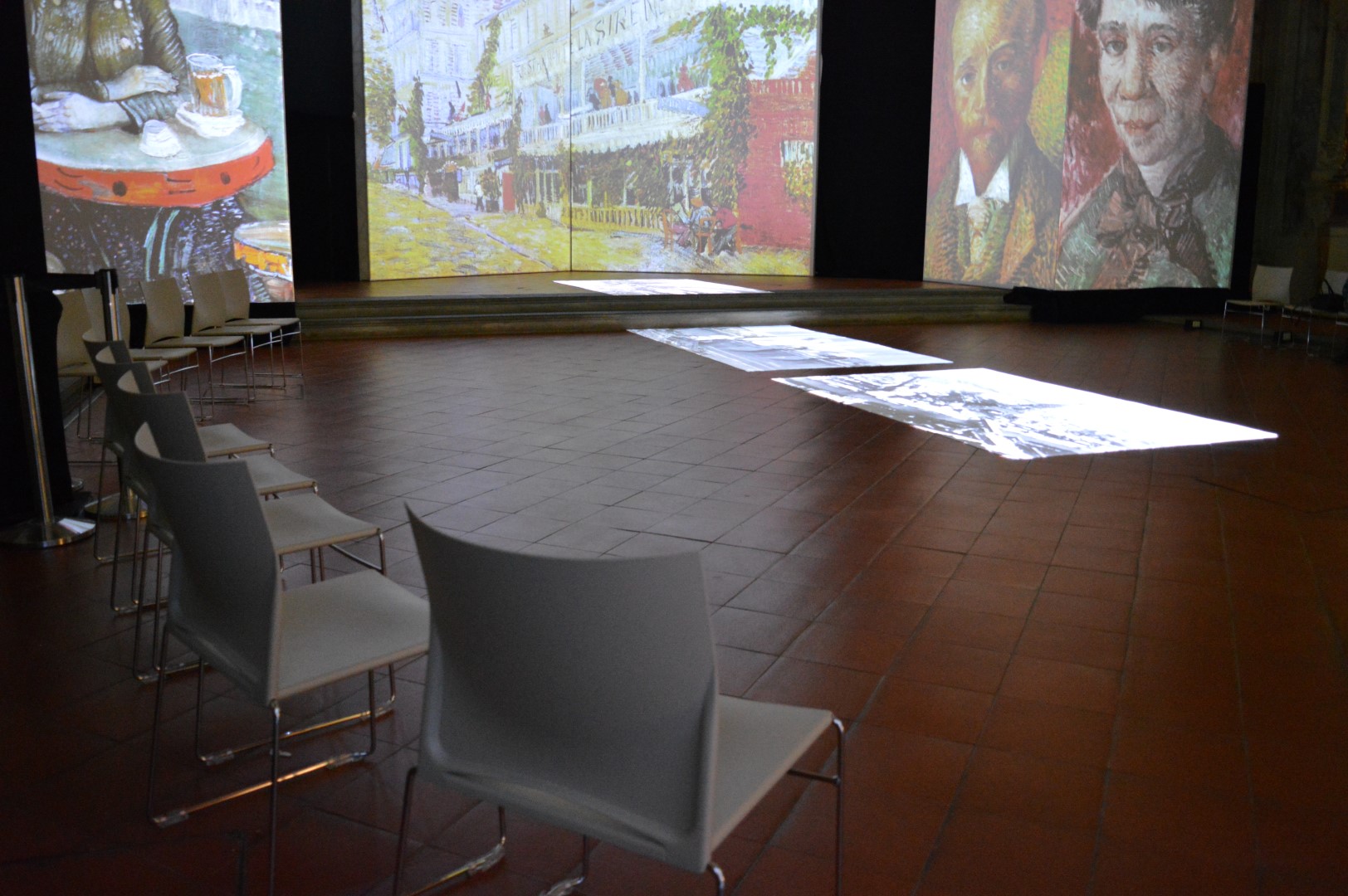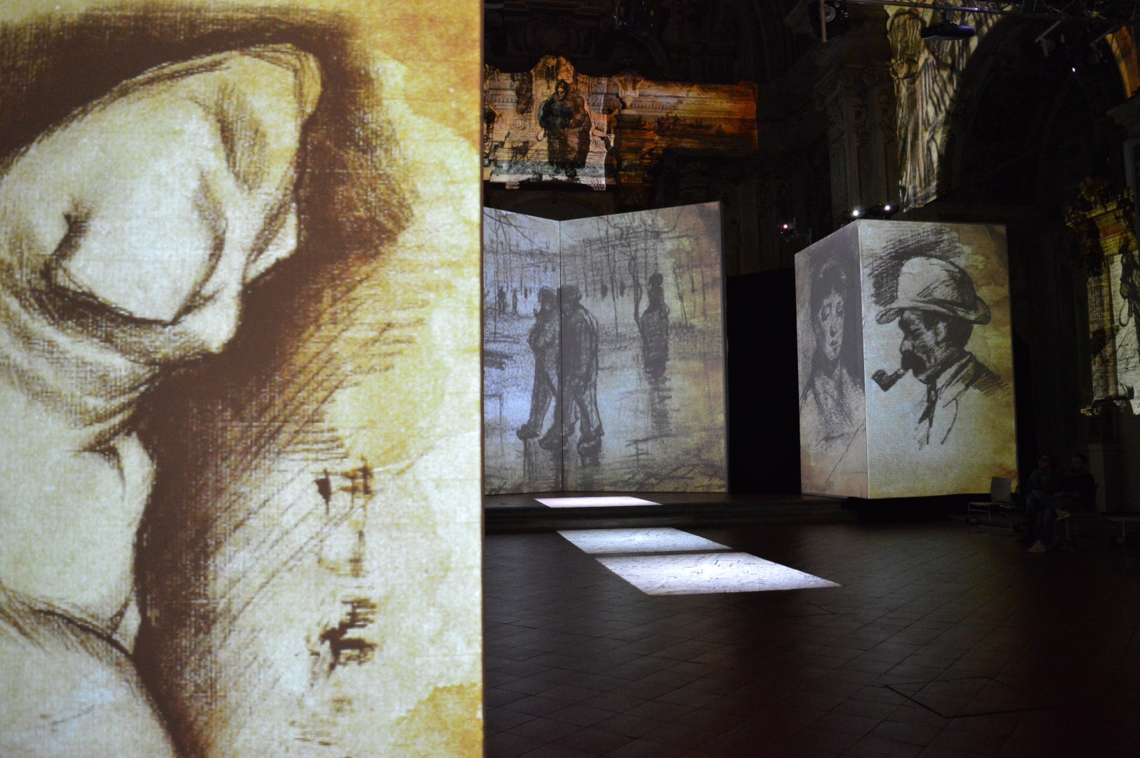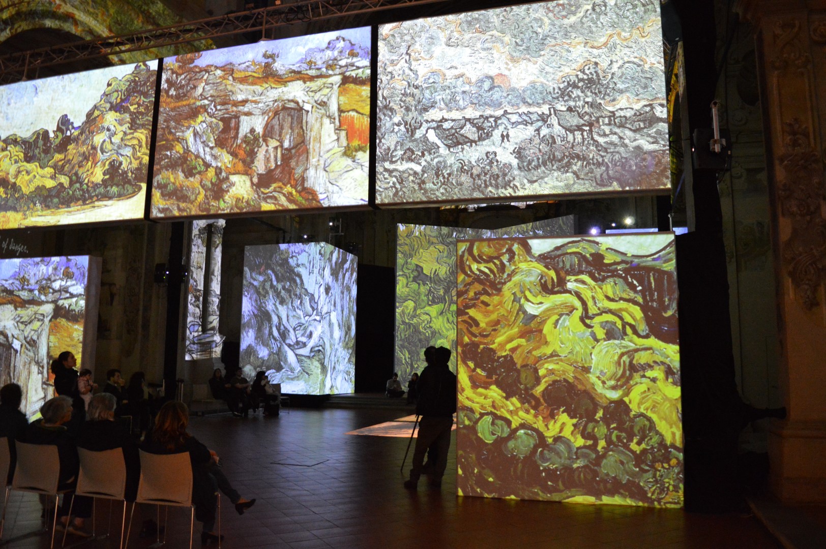 Il viaggio è centrato sul decennio 1880-90. C’è il suo vagare tra Parigi, Arles, Saint-Rémy e Auvers-sur-Oise, i luoghi dove Van Gogh, emblema dell’artista tormentato, creò molti capolavori senza tempo. I suoi inverni, i suoi girasoli, l’Olanda della nascita, il blu delle sue notti stellate. Una immersione lunga circa 45 minuti da testare in una molteplicità di angolazioni. Occhi e cuore non avranno sosta.