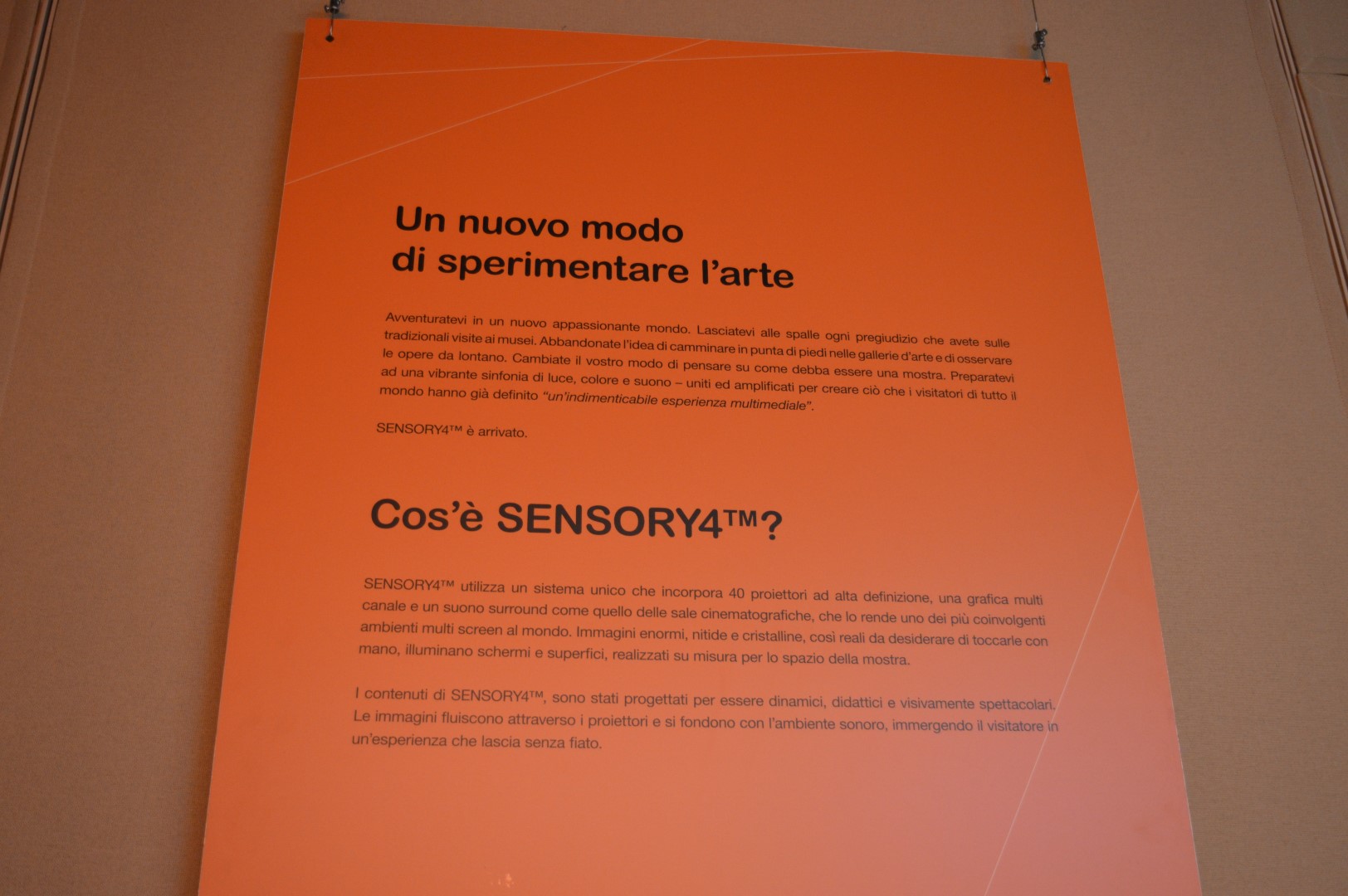 Chiudete gli occhi. Poi apriteli e chiudeteli ancora, ma non per molto. Provate questo esercizio. Una potente colonna sonora, una location particolare e più di 3.000 immagini di grandi dimensioni su schermi, pareti, soffitto, pavimento vi stupiranno. E vi accorgerete di avvertire una sensazione avvolgente.